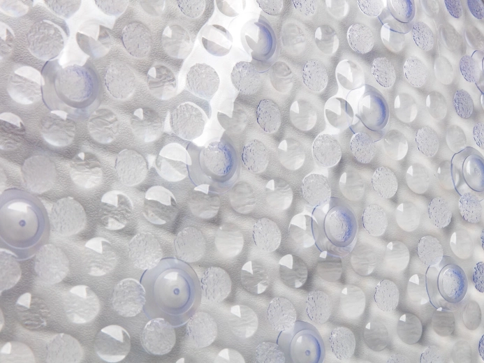 Dusiner af robuste sugekopper holder måtten sikkert på plads, så den ikke glider under brusebad eller karbad.