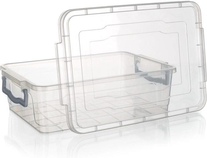 Opbevaringsboksen Gema med en kapacitet på 7 liter er en multifunktionel hjælper til den daglige organisering. Takket være den transparente kasse finder du hurtigt, hvad du har brug for, og de grå clips holder låget sikkert på plads. Den robuste plast gør vedligeholdelsen let og sikrer lang levetid selv ved regelmæssig brug.