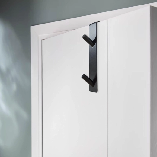 Hold entré og badeværelse ryddelige med den kompakte krog, som du nemt sætter på den øverste kant af indvendige døre. Det holdbare rustfrie stål og det moderne sorte design passer godt til de fleste interiører.