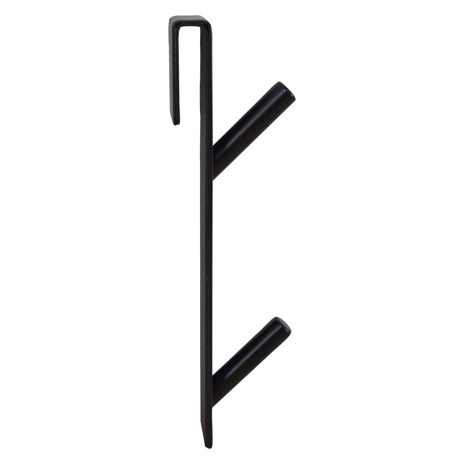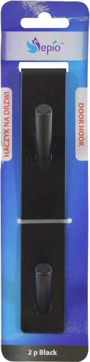 Praktisk dørhængekrog med 2 kroge i høj kvalitet af rustfrit stål i elegant sort, som giver hurtig ophængning af tøj og tilbehør uden boring. Det er nok blot at hænge den over dørens øverste kant, så er den klar til brug.