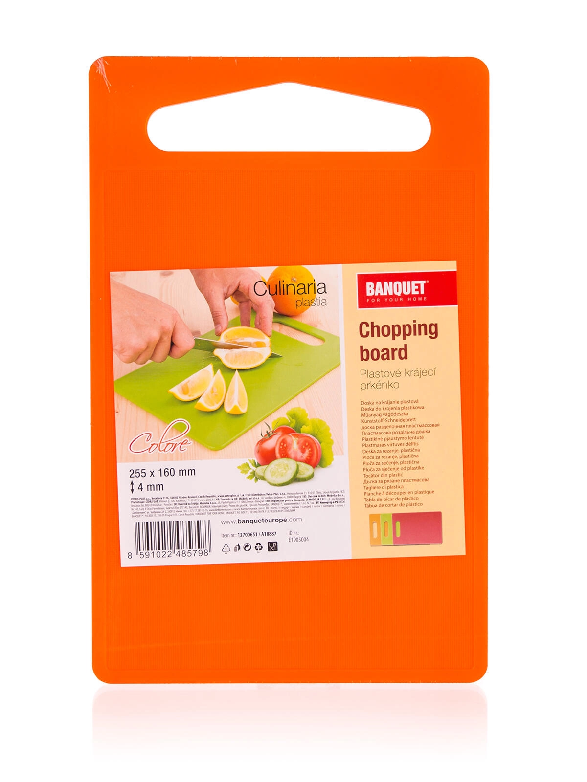 Vedligeholdelsen er maksimal enkel – brættet kan trygt komme i opvaskemaskinen, tørrer hurtigt og optager ikke meget plads i skuffen eller på køkkenbordet. Farvemixet (orange, rød, grøn) muliggør farvekodning til forskellige typer fødevarer.