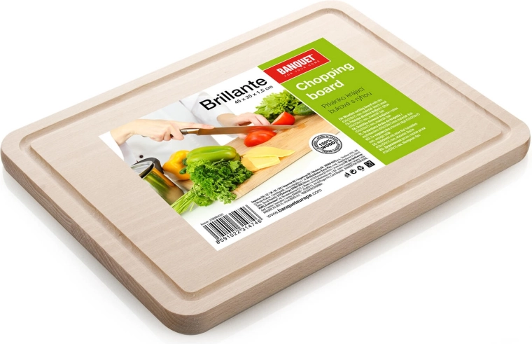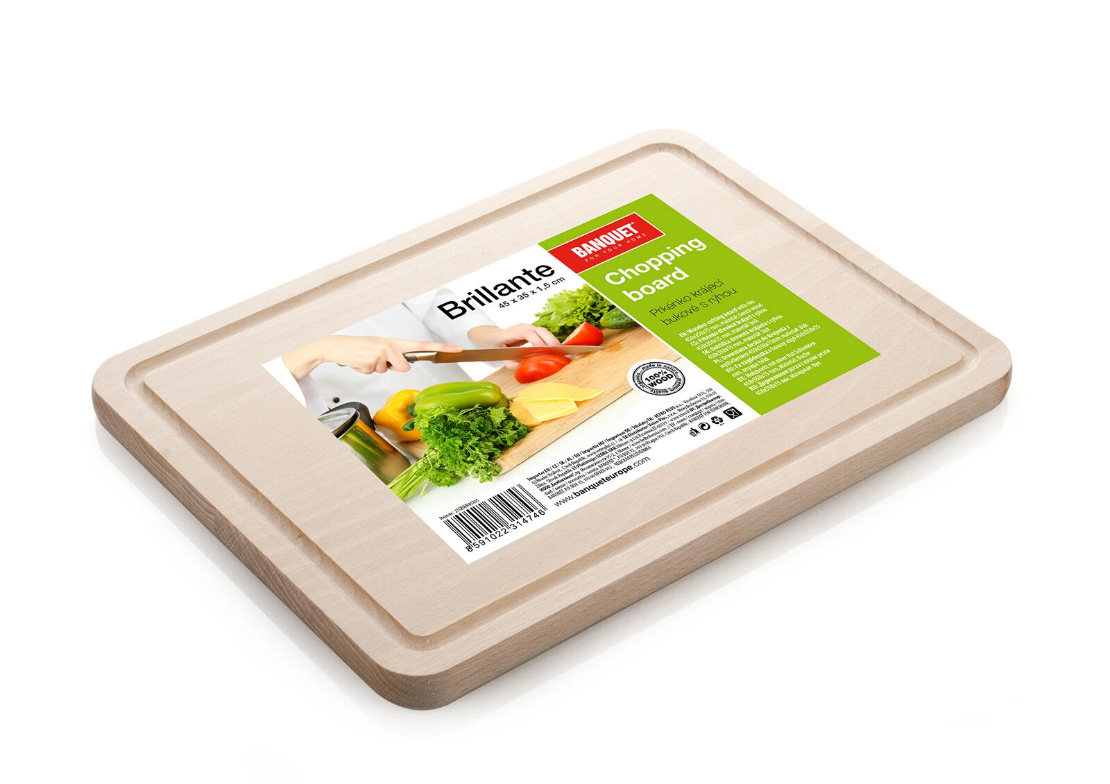 Opdag det pålidelige skærebræt BRILLANTE i bøgetræ, som takket være den omkransende rille opfanger safter fra kød, frugt og grøntsager og holder arbejdsfladen ren. Det naturlige bøgetræ i naturfinish giver brættet styrke, lang levetid og et elegant udseende til ethvert køkken.