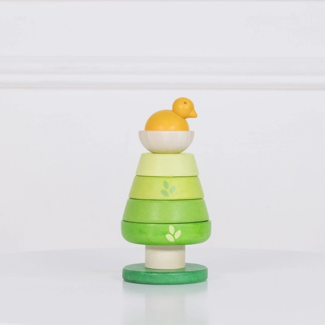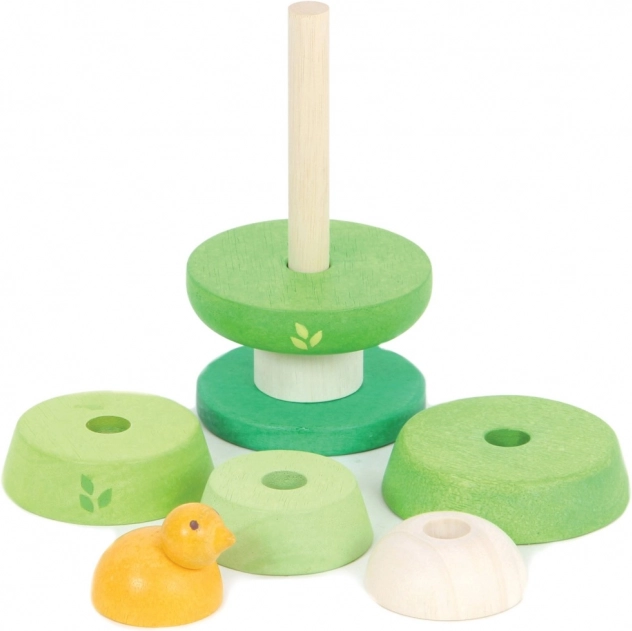 Opdag et kvalitets stablelegetøj formet som et træ med en sød lille fugl på toppen. Delene i forskellige grønne nuancer motiverer børn til at skelne mellem farver og former, mens den stabile base sikrer sikker leg. Den fleksible pind gør stablingen komfortabel og skånsom selv for de mindste hænder.