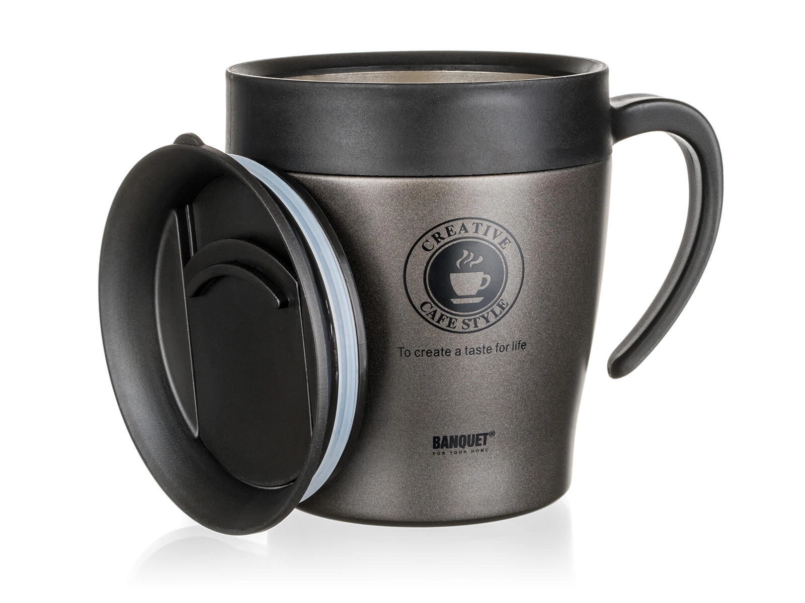 Låget med en tætsluttende silikone-ring reducerer spild og beskytter drikken under gang eller kørsel. Til transport anbefales opretstående position.