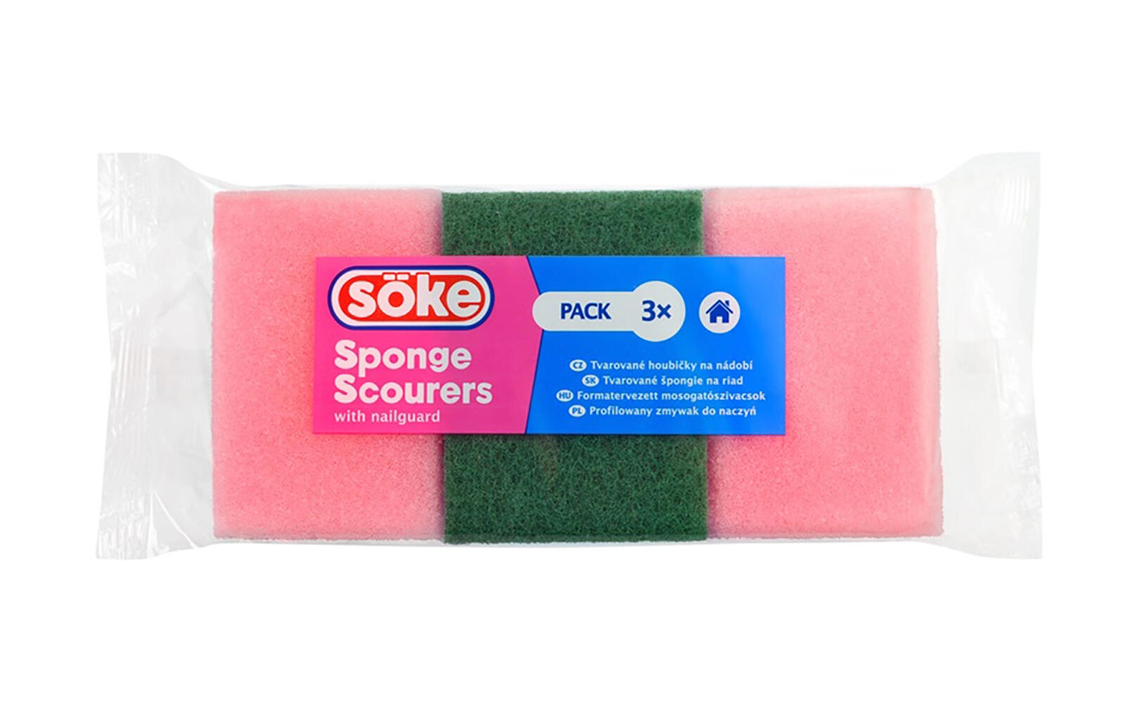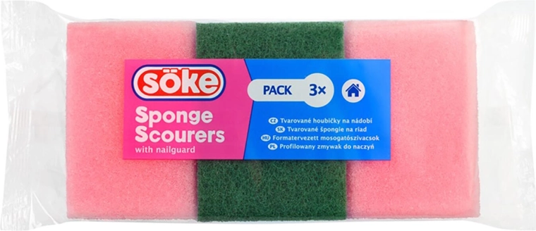 Et praktisk sæt formede opvaskesvampe i en pakke med 3 stk. sikrer effektiv rengøring af tallerkener, gryder og pander. Kombinationen af den bløde side og grøn skuresvamp klarer selv genstridigt snavs, mens den ergonomiske form giver behageligt greb og nem håndtering. Farvemix gør det lettere at skelne svampene til forskellige overflader.
