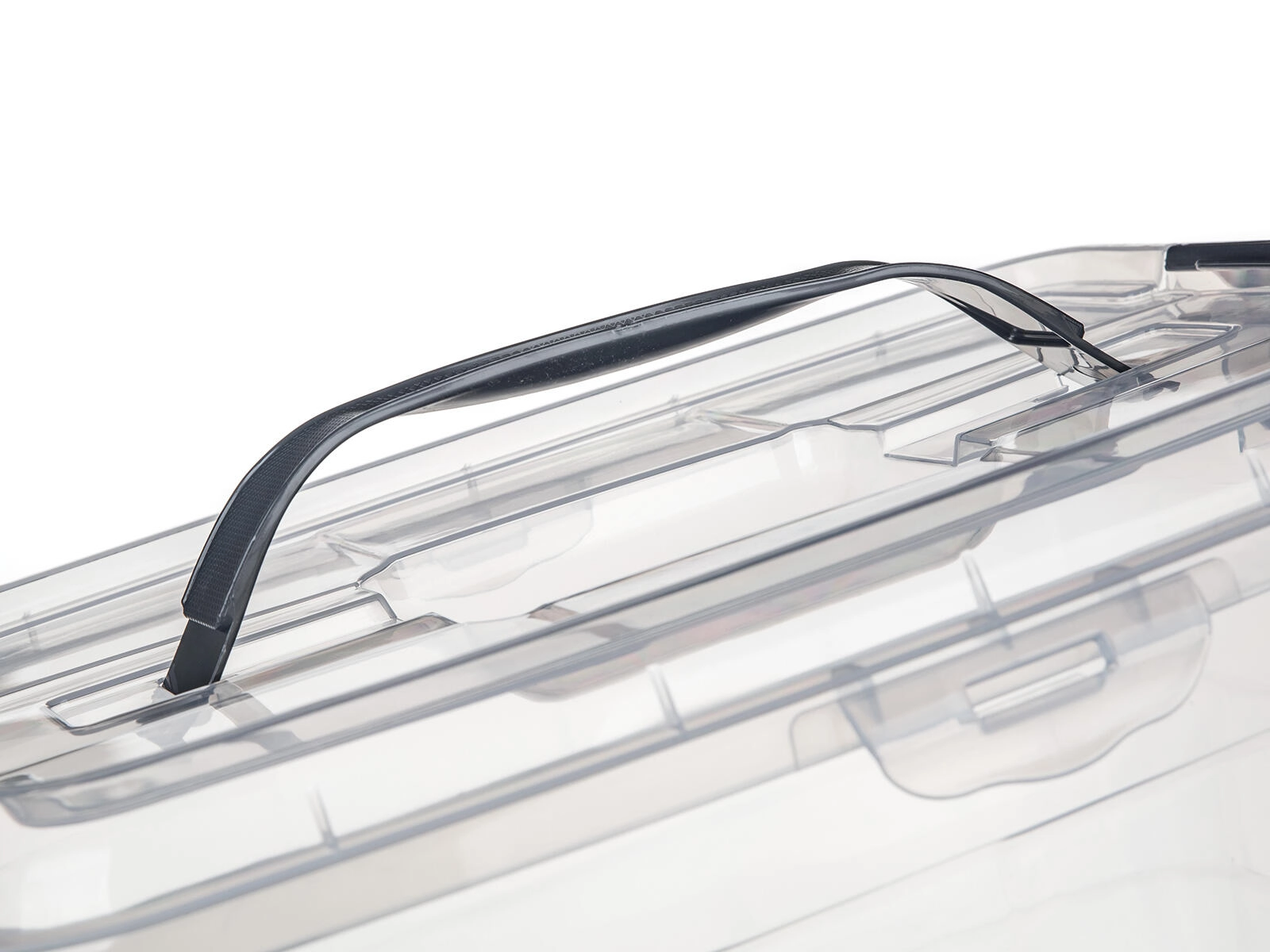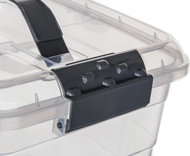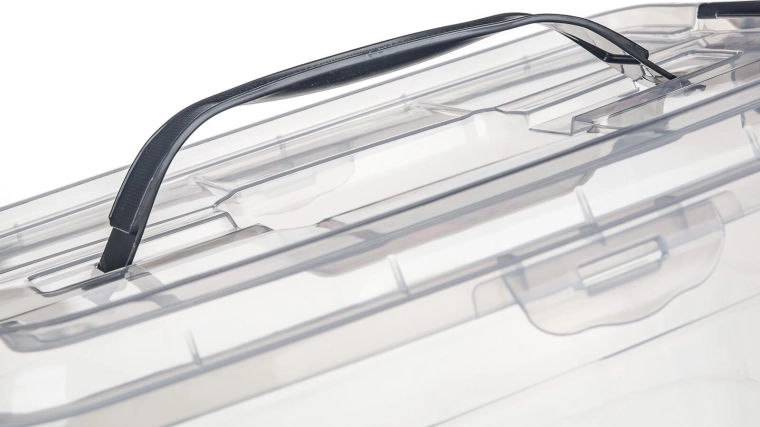 Det integrerede håndtag i låget gør håndtering og transport nem, selv når boksen er helt fyldt. Ideel til både organisering og transport.