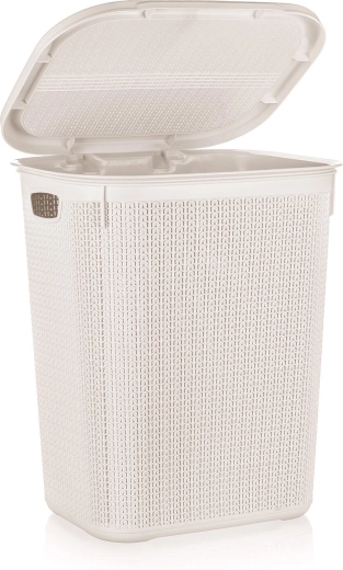 Praktisk vasketøjskurv på 50 l i rattanlook, ideel til enhver husstand. Med låg skjuler den indholdet og holder badeværelse eller bryggers pænt. Slidstærk plast sikrer lang levetid, nem vedligeholdelse og lav vægt. Den elegante cremefarve passer til de fleste interiører.