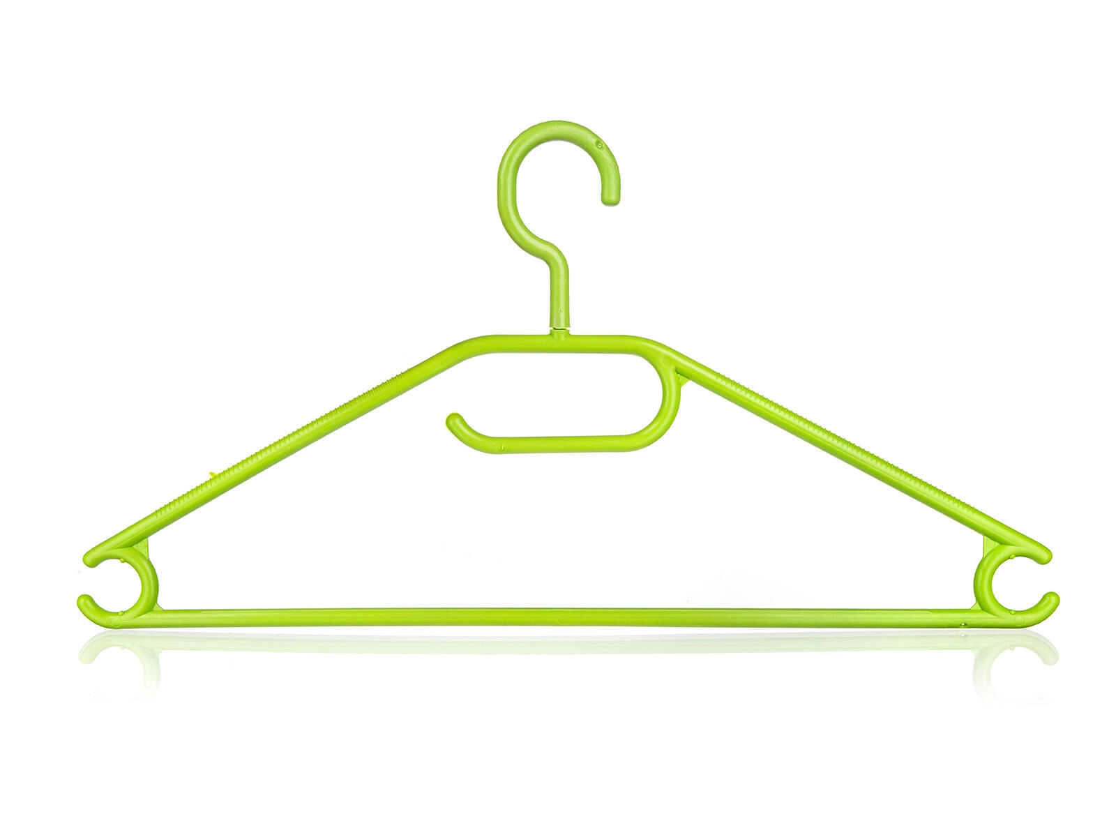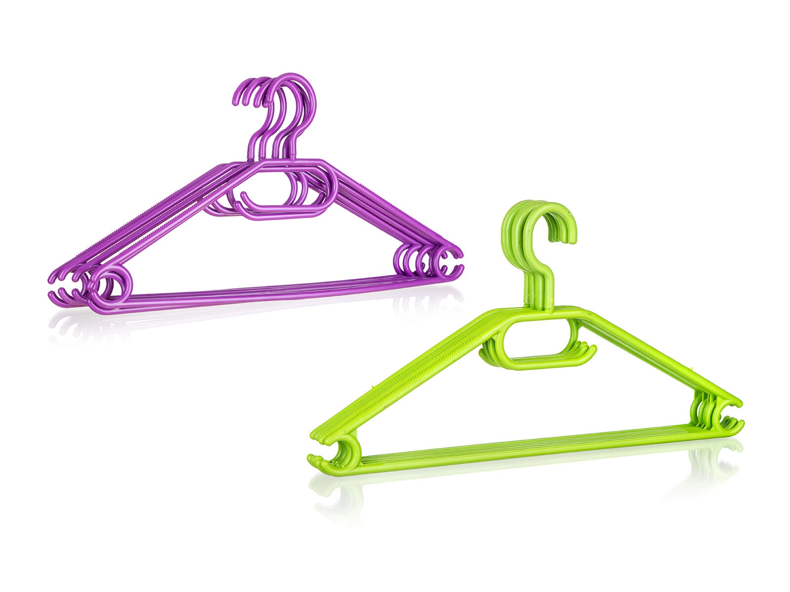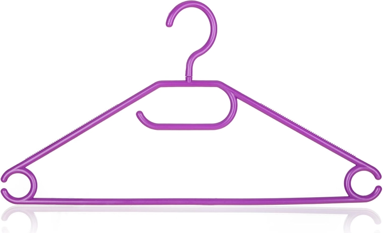 Bøjlerne er lette, holdbare og nemme at vedligeholde. Den nederste stang er ideel til bukser, nederdele eller tørklæder. Farvemixet i grøn og lilla giver din garderobe et friskt look og gør det nemt at skelne mellem familiens tøj.