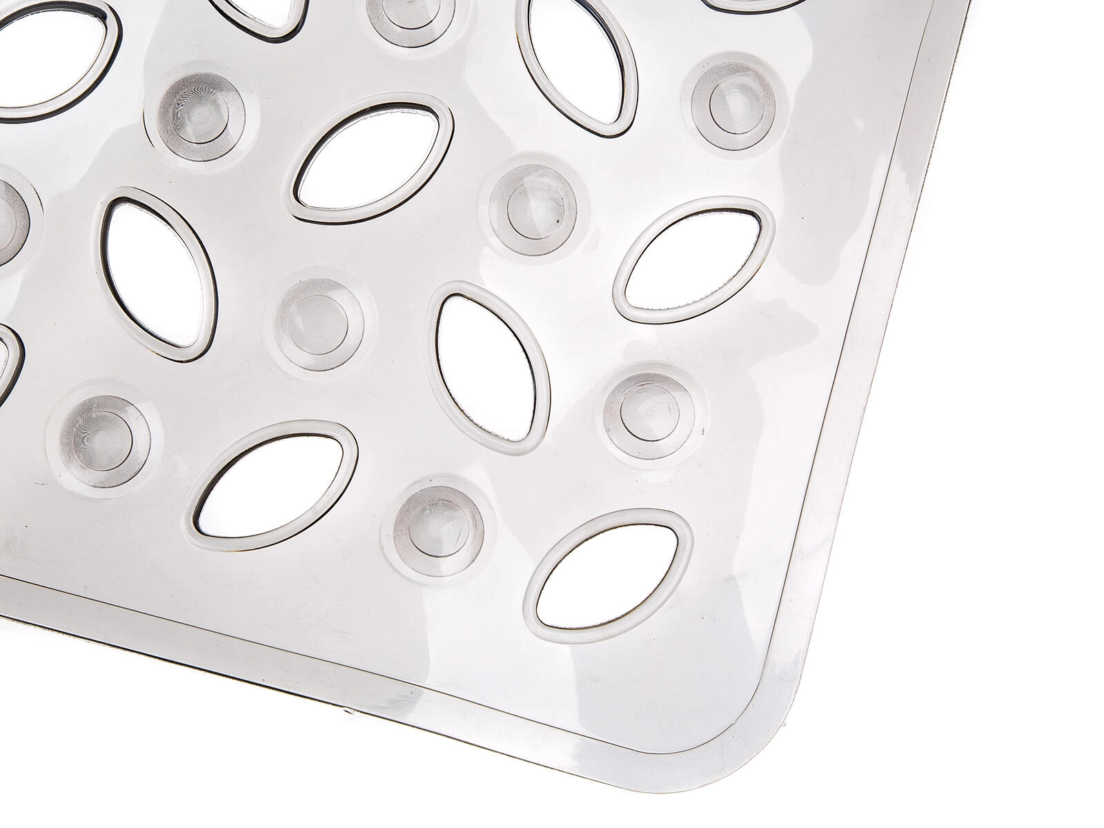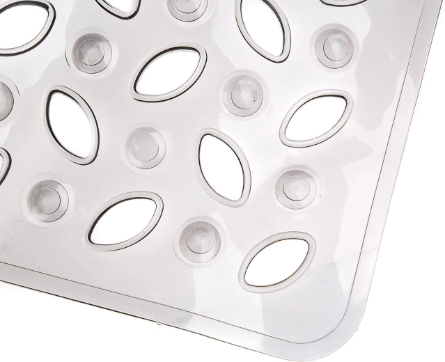 Det transparente grå design virker elegant og alsidigt, så det let kan matches med enhver badeværelsesstil. Måtten er ideel til daglig brug og nem at vedligeholde – skyl den blot efter badet og lad den tørre.