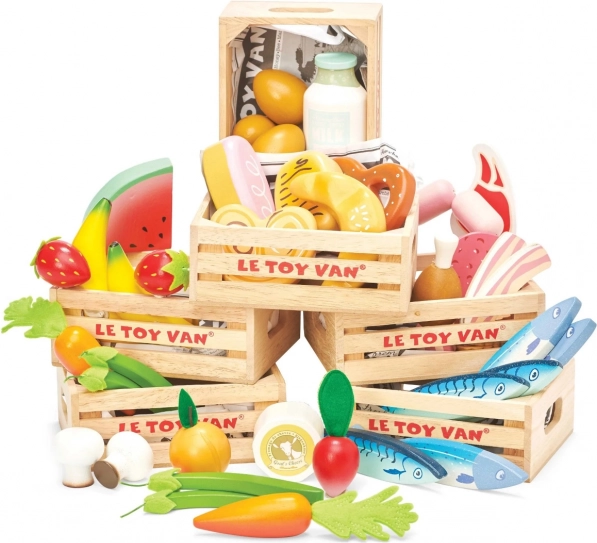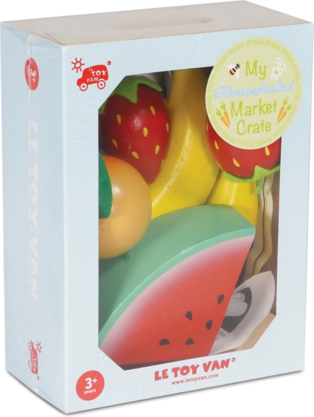 Trækassen med frugt fra Le Toy Van er det perfekte middel til at udvikle børns fantasi. Det indeholder forskellige slags frugter som banan, jordbær og appelsin. Alle dele er lavet af solidt og bæredygtigt træ, malet med giftfri farver og har den ideelle størrelse til små børnehænder.