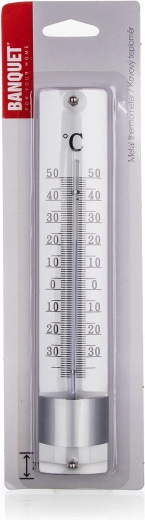 Det pålidelige metaltermometer i tidløs sølvfarve er et fremragende valg til hjemmet, værkstedet, pavillonen og gangen. Den letlæselige skala i området -40 til +50 °C giver overblik over den aktuelle temperatur hele året.