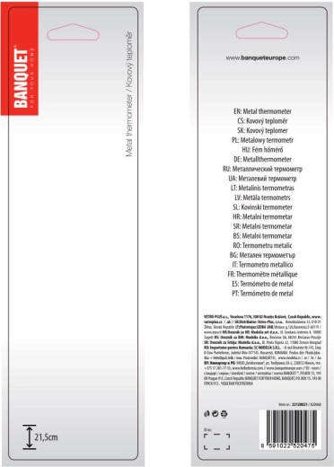 Elegant væghængt termometer i metal med en højde på 21,5 cm og en bredde på 4 cm måler præcist temperaturen i området -40 til +50 °C. Takket være det holdebare metaldesign og det praktiske ophængssystem er det ideelt til indendørs brug og beskyttede udendørsområder. Den sølvfarvede finish giver et rent, moderne udtryk i ethvert rum.