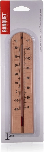 Praktisk vægmonteret termometer af kvalitets lyst træ måler temperaturen i to skalaer – °C (-20 til +50) og °F (0 til +120). Takket være øje til ophæng kan det nemt placeres derhjemme, i sommerhuset eller på kontoret.