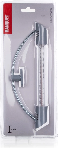 Praktisk vinduestermometer med en længde på 23 cm i en kombination af plast og metal til præcis overvågning af udendørstemperaturen. Det tilbyder en overskuelig skala i området -50 til +50 °C og nem montering. Pakken indeholder skruer til fastgørelse. Det stilfulde sølvfarvede design passer til de fleste vinduer.