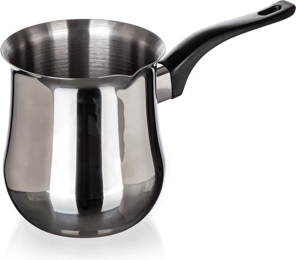 Den gennemtænkte form med udvidet kant gør præcis og ren udskænkning lettere, mens det ergonomiske håndtag giver et sikkert og stabilt greb. Djezvaen er fantastisk ikke kun til kaffe, men også til opvarmning af mælk og andre drikke.