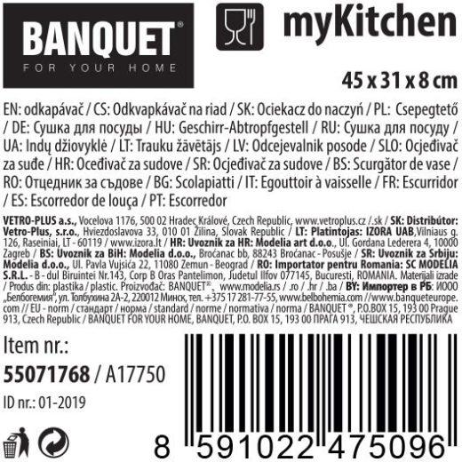 Det lette og holdbare plast er nemt at rengøre, og den antracitgrå finish passer til moderne interiører. Målene 45 × 31 × 8 cm giver rigelig plads til den daglige opvask uden at optage unødigt meget plads.