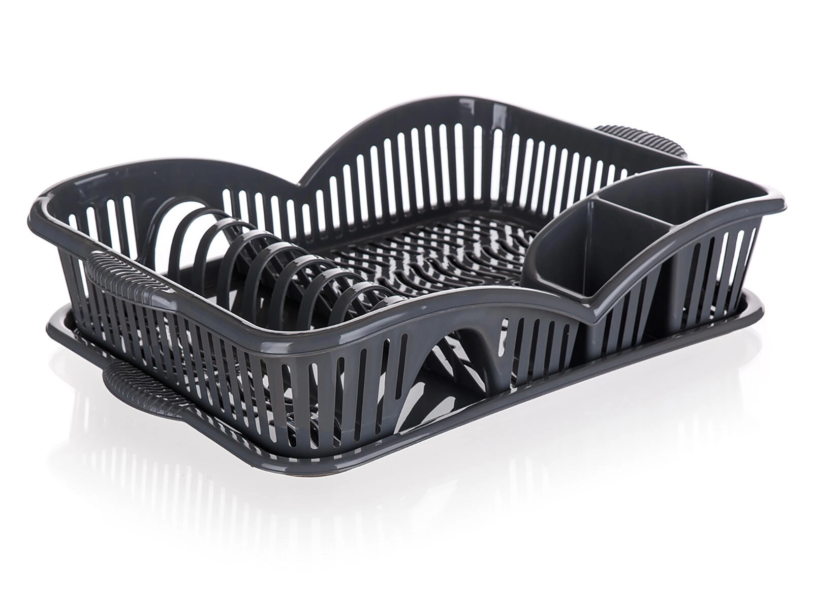Det praktiske opvaskestativ myKitchen i elegant antracit sparer tid og plads på køkkenbordet. Det tilbyder 3 overskuelige sektioner til bestik, tallerkener og andet service, har en bakke til opsamling af vand og er lavet af slagfast plast for nem vedligeholdelse.