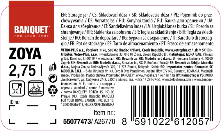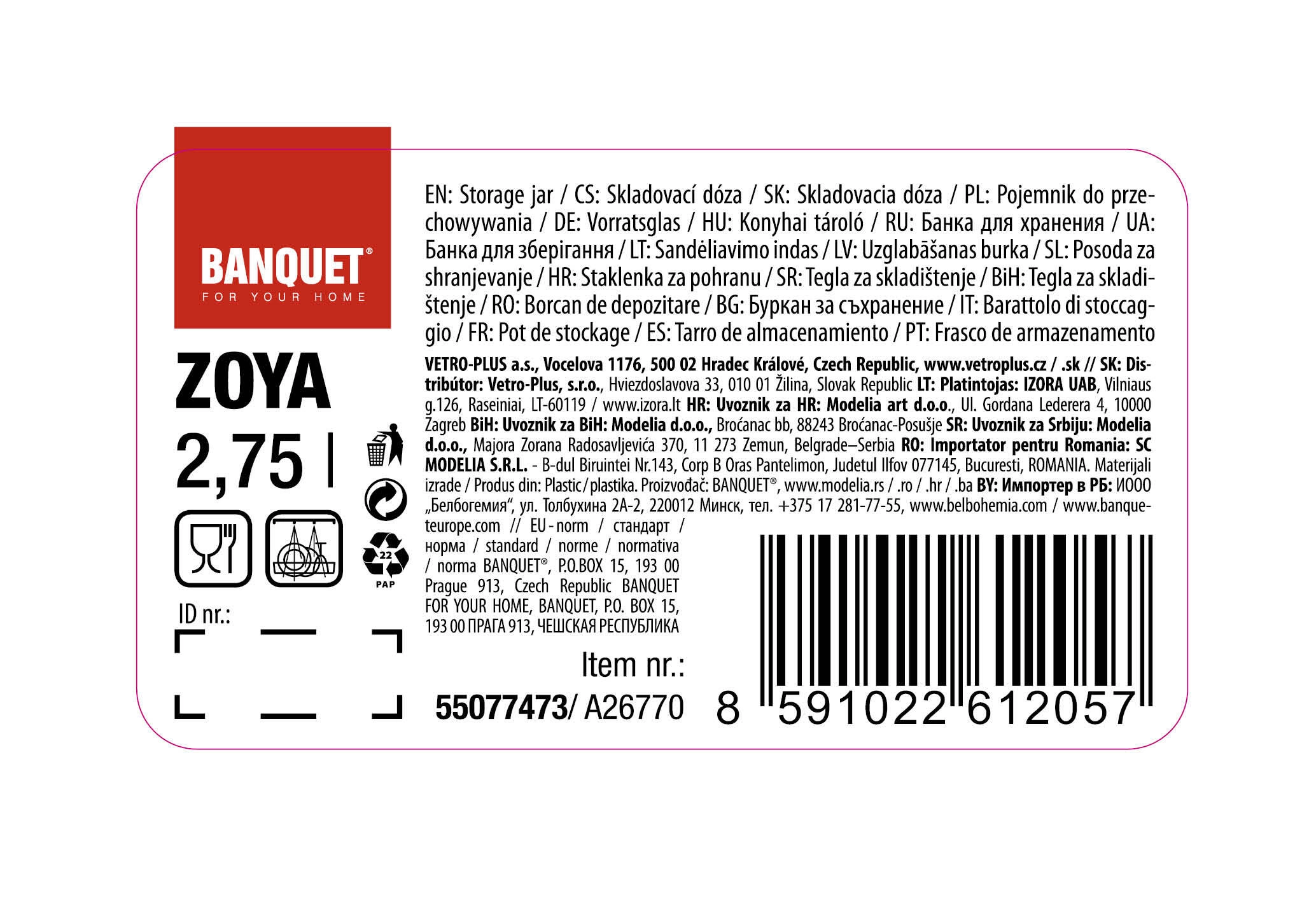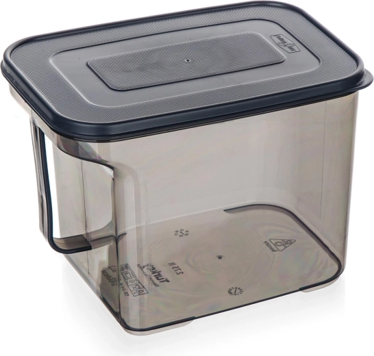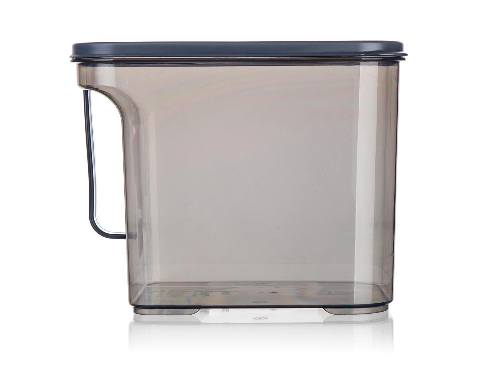 Den praktiske plastboks Zoya med volumen 2,75 l og solidt låg i røgfarvet nuance er ideel til opbevaring af fødevarer som ris, pasta, morgenmadsprodukter eller tørre ingredienser. Takket være det integrerede hank bæres den nemt, og det tætsluttende låg holder indholdet frisk længere. Gennemsigtige sider giver øjeblikkeligt overblik over indholdet, og muligheden for stabling sparer plads i både spisekammer og på køkkenbord.