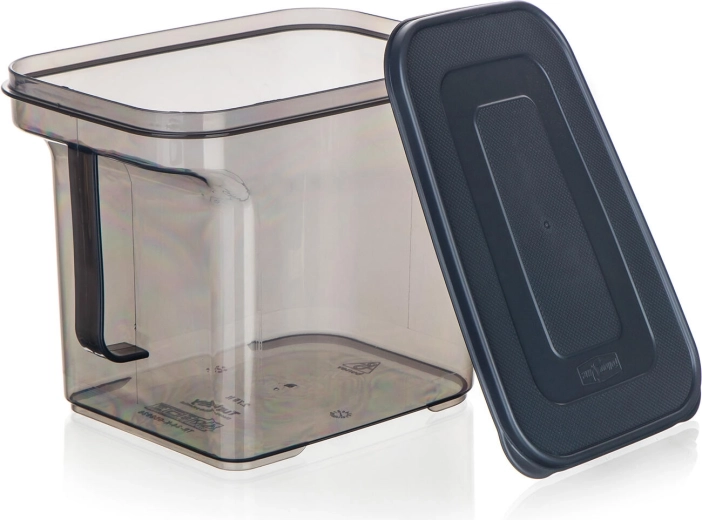 Hold dit køkken organiseret og fødevarerne friske længere med Zoya-boksen på 2,75 l. Den røgfarvede, semitransparente udførelse gør det let at se indholdet, mens det solide låg med tæt pasform beskytter ingredienserne mod fugt og snavs. Det integrerede hank for sikkert greb gør håndtering enklere ved både påfyldning og udhældning.
