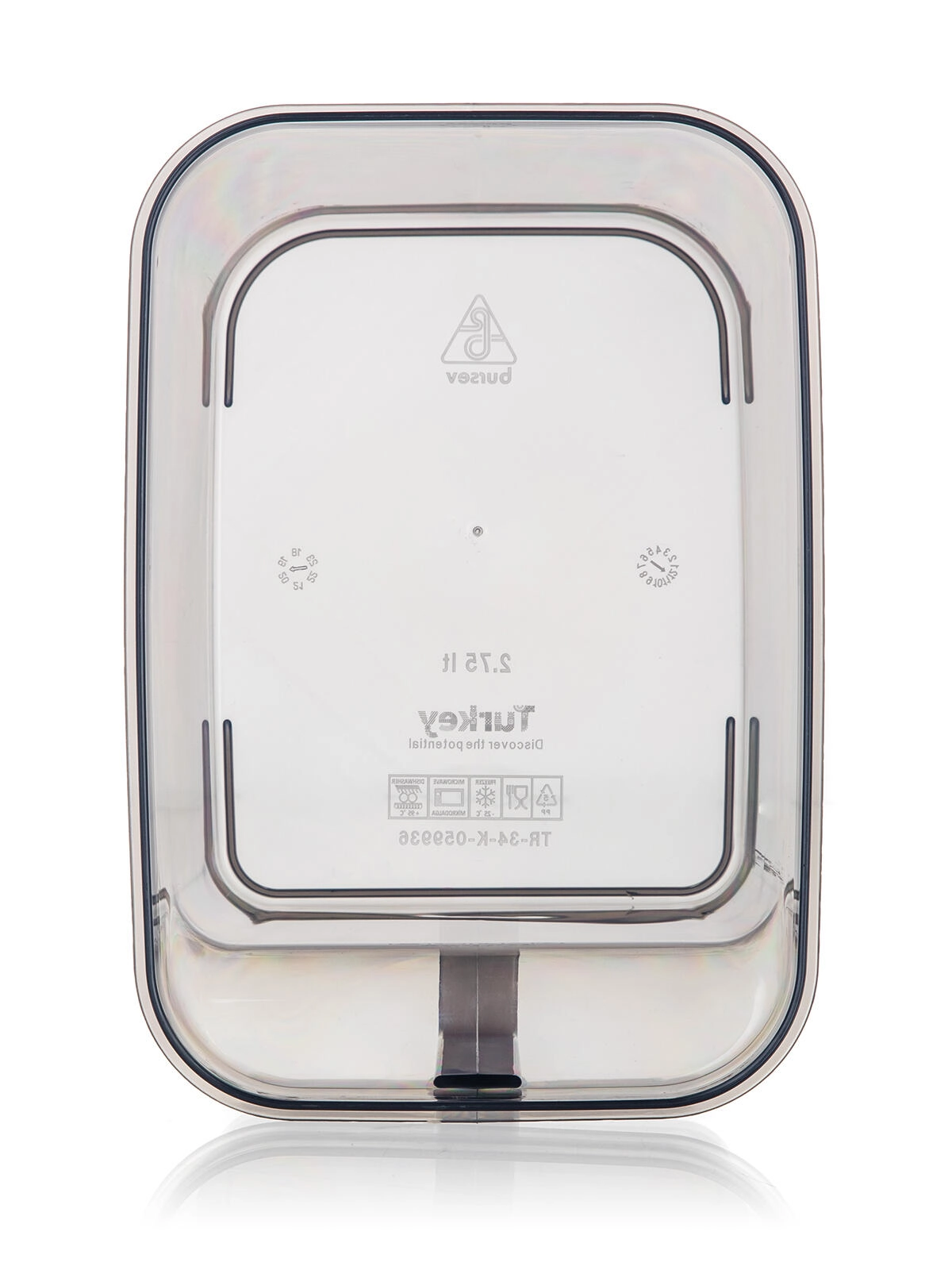 Gennemsigtige sider, tætsluttende låg, integreret hank, stabelbar