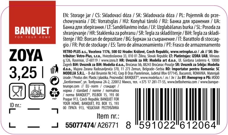 Praktisk plastboks Zoya med volumen 3,25 l, røgfarvet låg og integreret hank er ideel til opbevaring af fødevarer som ris, pasta, cerealier eller suppetilbehør. Takket være det gennemsigtige korpus har du altid overblik over indholdet, og det tætsluttende låg hjælper med at bevare friskheden. Boksene kan nemt stables for at spare plads i både spisekammer og på køkkenbord.
