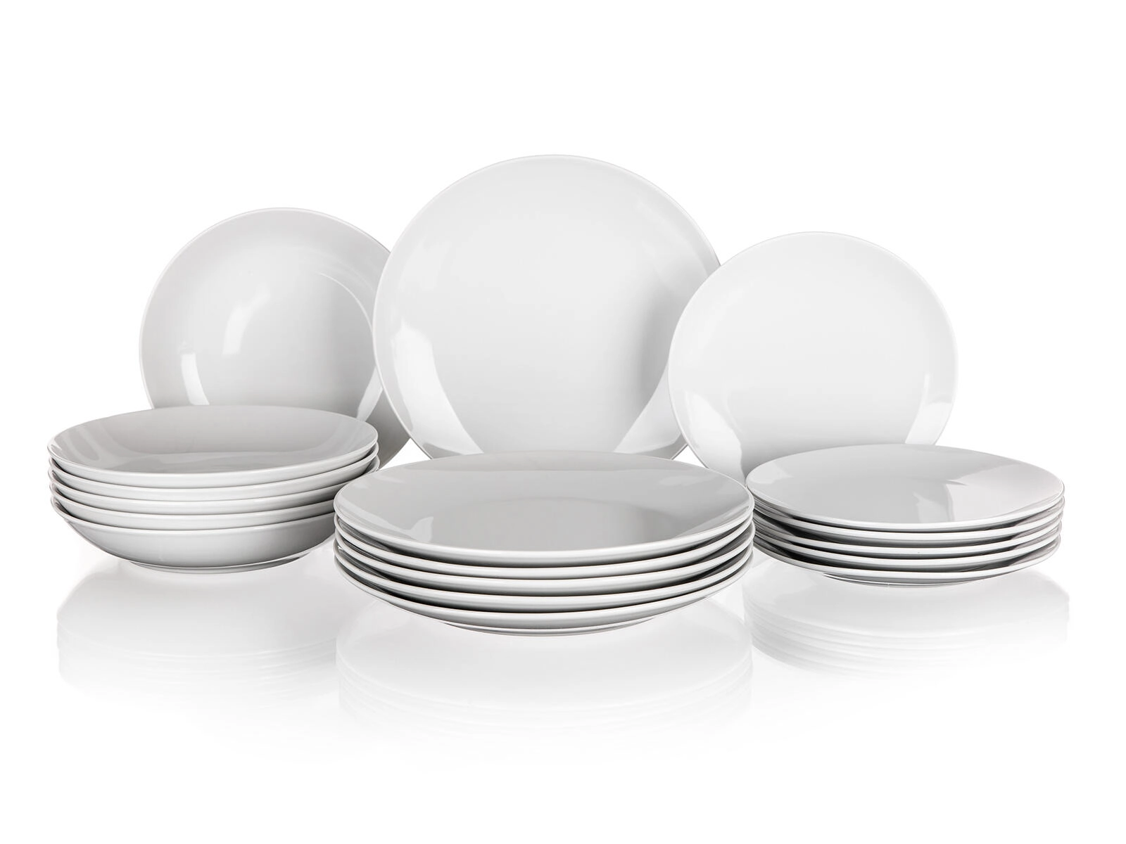 Indeholder desserttallerkener 19 cm, dybe tallerkener 21,5 cm og flade tallerkener 24 cm – alt, hvad du behøver til en fuld menu.