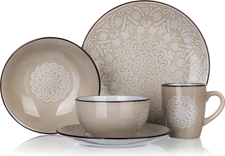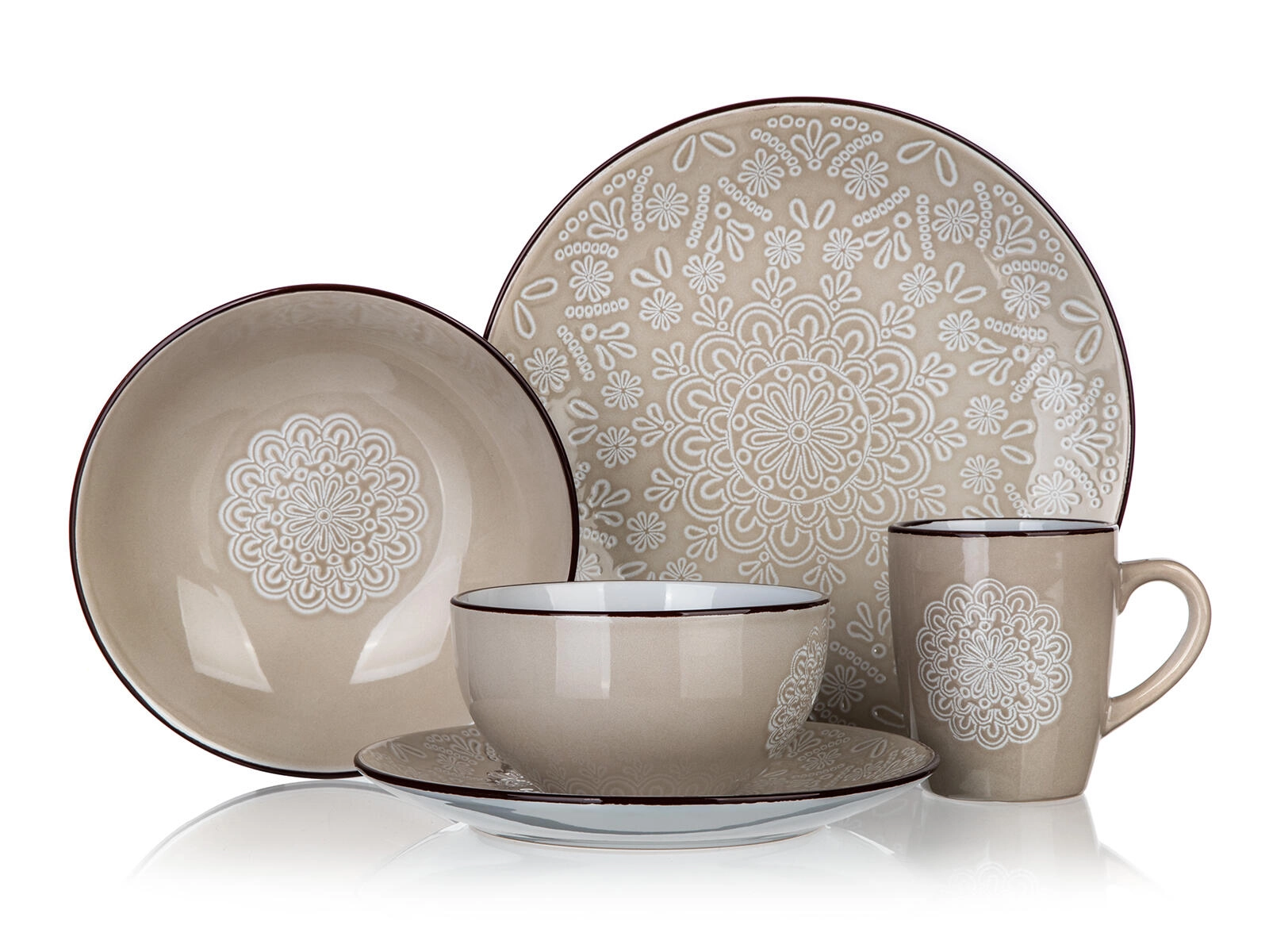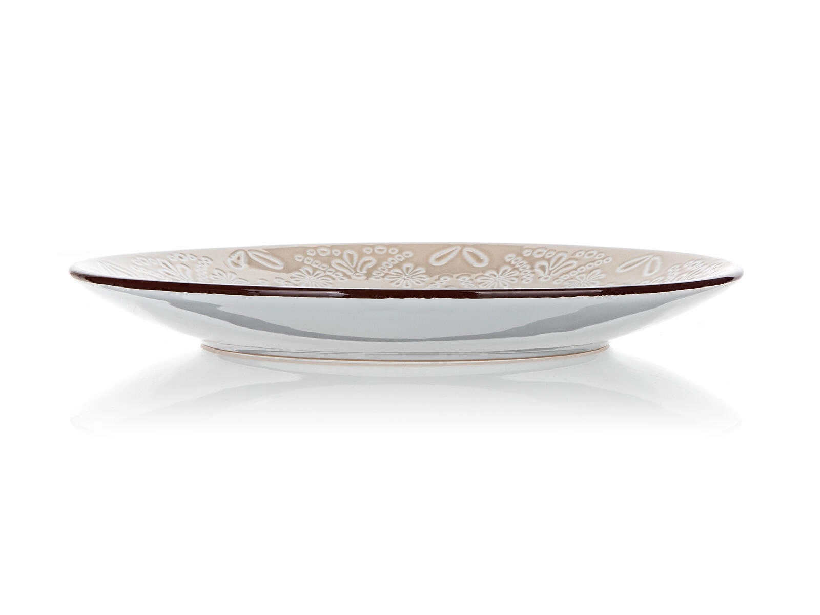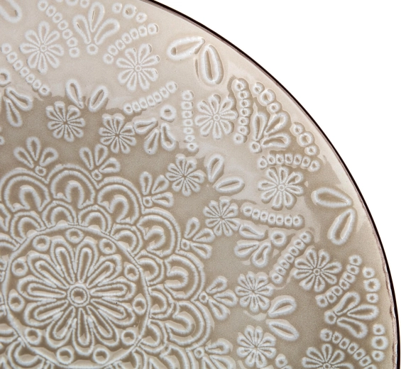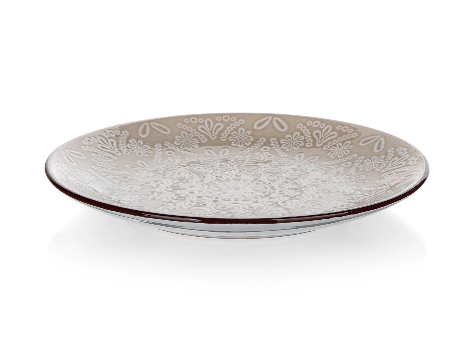 Hvide prægede blomster- og geometriske motiver skaber en fin tekstur og giver tallerkenen et unikt udtryk til enhver lejlighed.