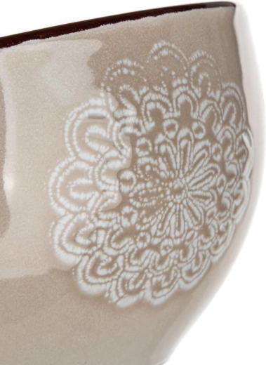 Det let reliefprægede mandala-/blondemønster med mørkere kant giver SHAPE-skålen et unikt præg og gør den nem at kombinere med andet service.