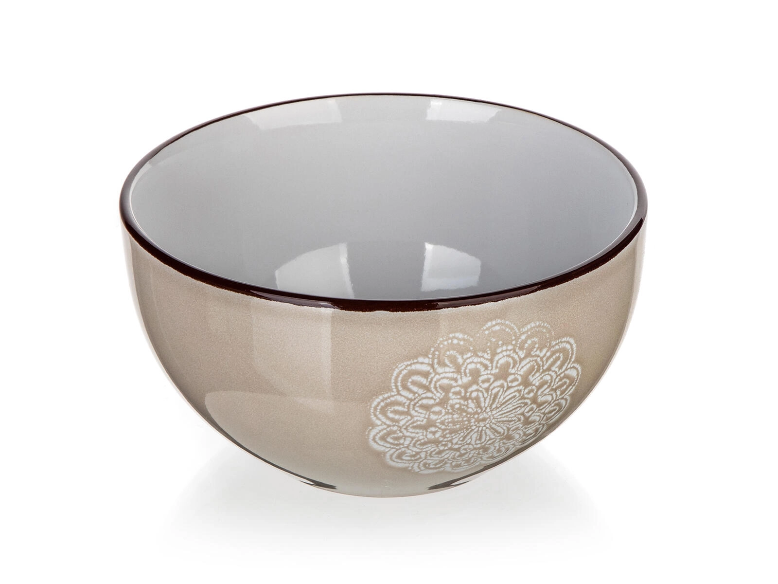 Stilren keramisk skål SHAPE med en diameter på 14,3 cm i elegant cremefarve med diskret blondedekor. Takket være den holdbare glasur er den let at rengøre, tåler opvaskemaskine og mikrobølgeovn og er perfekt til morgenmad, supper og desserter.