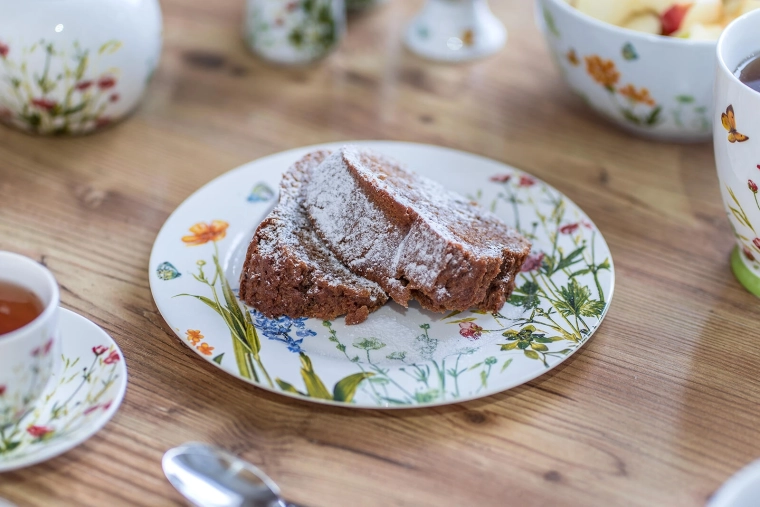 Nyd desserter med stil. Desserttallerkenen Meadow med farverigt blomsterprint og fine illustrationer af sommerfugle lyser både hverdagsservering og festlige stunder op. Den universelle størrelse på 19 cm passer til tærter, kager og små salte lækkerier.