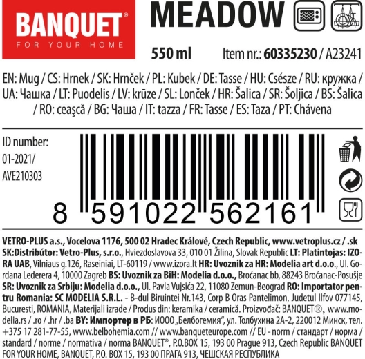 Nyd din yndlingste eller kaffe med det rummelige krus på 550 ml med naturmotiv MEADOW. Det robuste keramiske krus med blank glasur er egnet til varme og kolde drikke, og kan bruges i både opvaskemaskine og mikrobølgeovn. Ligger godt i hånden og pynter på ethvert bord.