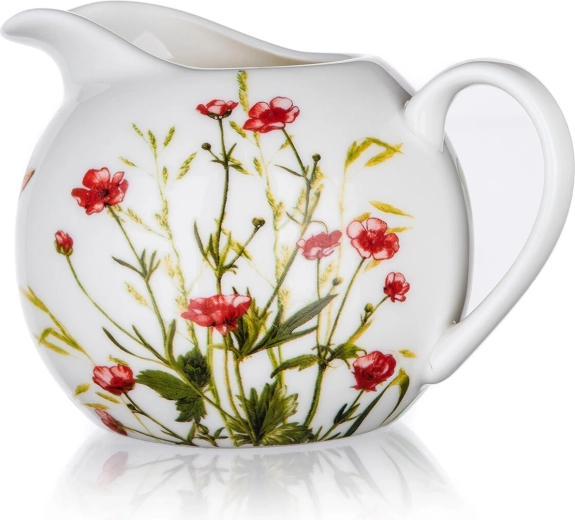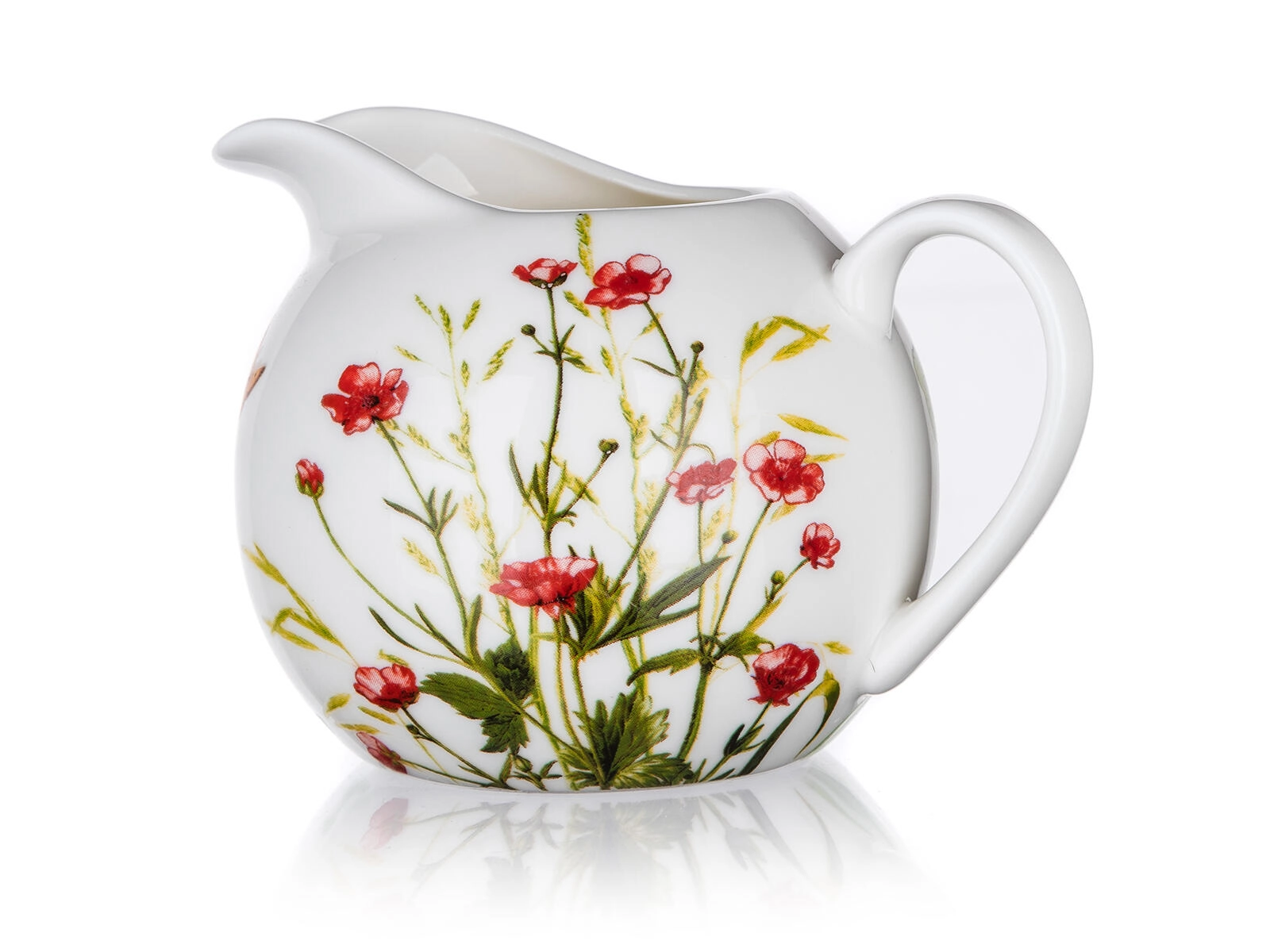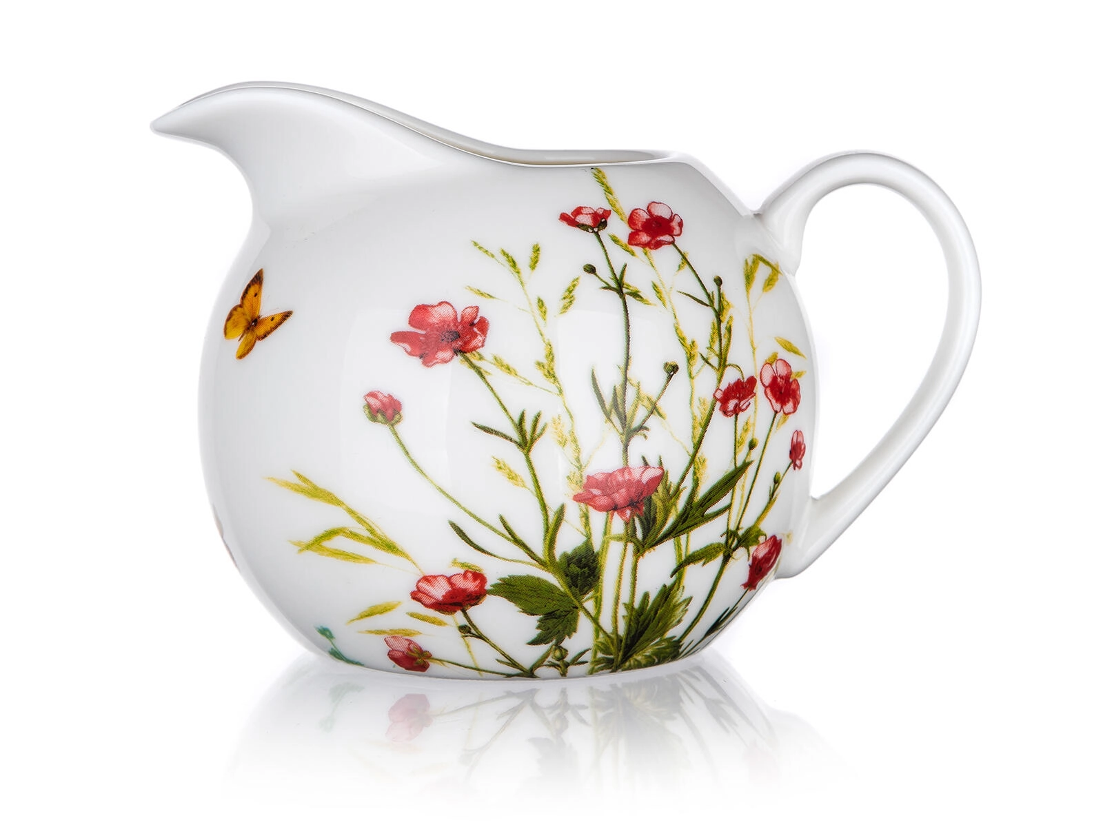 Bring et blidt strejf af natur til bordet. Mælkekanden Meadow på 250 ml imponerer med blank hvid glasur og et detaljeret blomstermønster med sommerfugle. Den ergonomiske hank og formede hældetud giver komfortabel og præcis ophældning af mælk eller fløde.