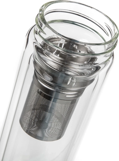 Den integrerede si i rustfrit stål gør det nemt at trække løste, urter eller tilberede frugtinfusioner direkte i flasken.