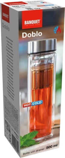 Nyd din yndlingsdrik når som helst og hvor som helst. DOBLO-flasken er lavet af borosilikatglas, som er modstandsdygtigt over for høje temperaturer og termisk chok. Den dobbeltvæggede konstruktion minimerer varmeoverførsel til overfladen, så flasken er behagelig at holde på, og drikken bevarer den ideelle temperatur længere – uanset om det er varm te eller forfriskende vand med frugt.