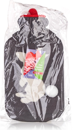 Denne kvalitets varmepude i rød farve med et charmerende strikket betræk med kanin kombinerer funktionalitet og komfort. Med en kapacitet på 2 liter holder den på varmen i lang tid og hjælper ved menstruationssmerter, muskelspændinger og til at varme kolde hænder og fødder.