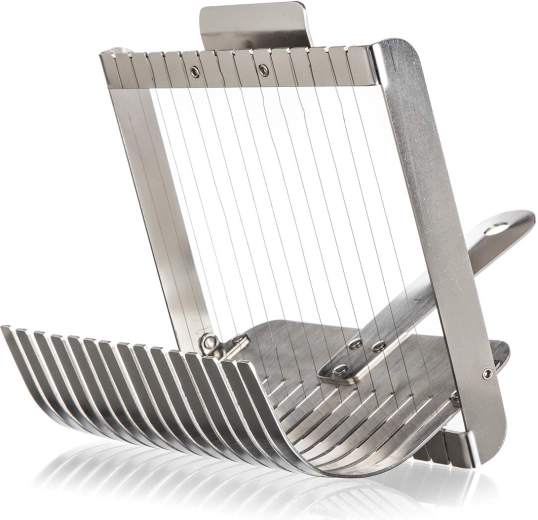 Den praktiske trådskærer til knödel AKCENT i kvalitets rustfrit stål sikrer perfekt jævne skiver uden at presse eller rive. Takket være den integrerede løftespatel kan du nemt tage nyligt kogte knödel op af det varme vand og hurtigt og præcist skære dem på få øjeblikke. Også velegnet til rullekager, bløde oste og andre bløde fødevarer.
