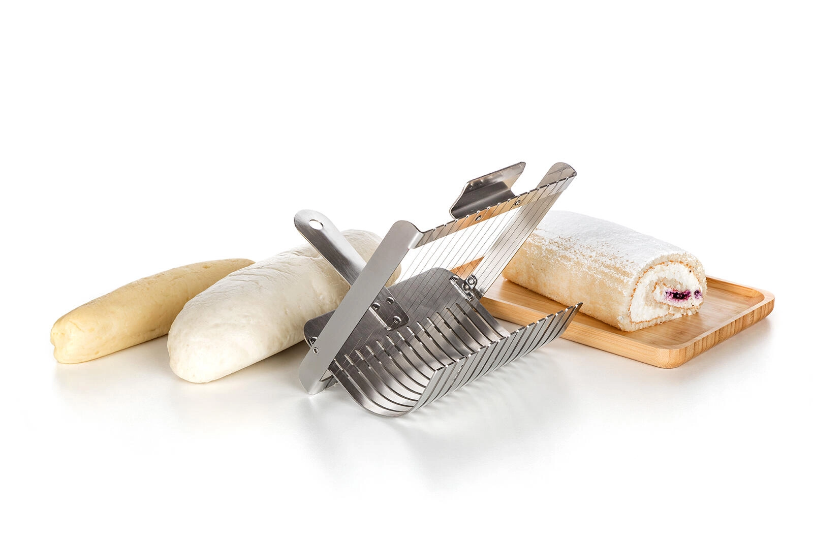 Trådmekanismen skærer bløde knödel og rullekager i rene, symmetriske skiver uden at mase. Suverænt resultat ved servering.
