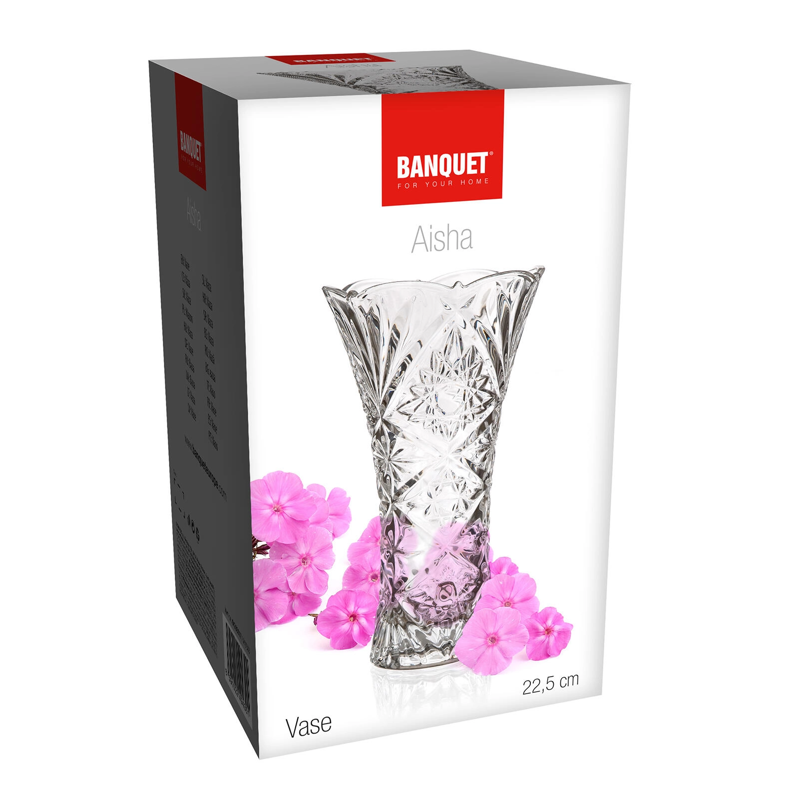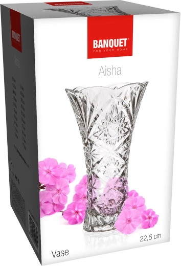 Den elegante glasvase Aisha i størrelsen 13 × 23 cm passer perfekt til både moderne og klassiske interiører. Den er ideel til friske blomster og stilfulde dekorationer, og den udmærker sig ved et rent design og kvalitetsglas.