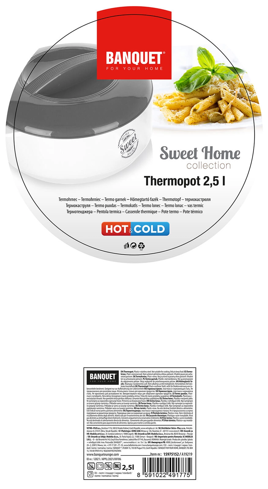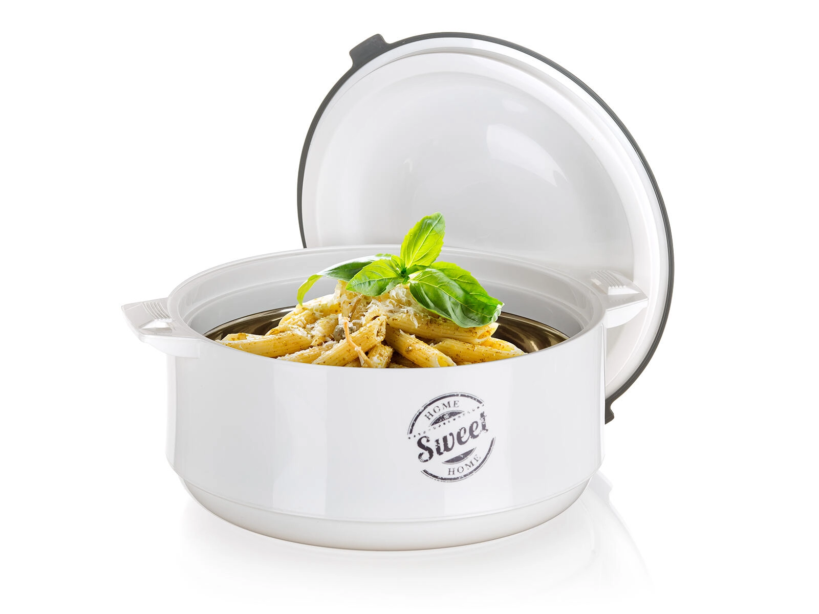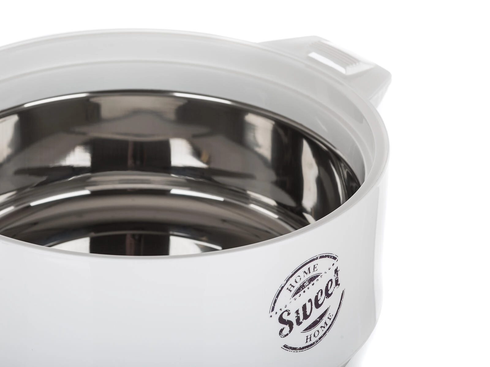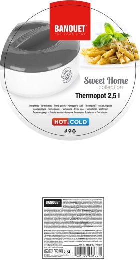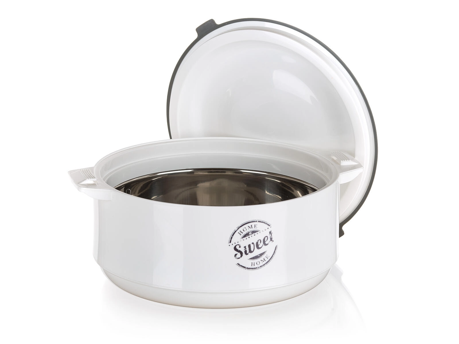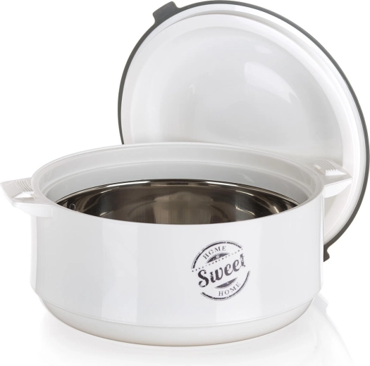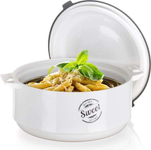 Termoskålen Sweet Home med et volumen på 2,5 l er en pålidelig hjælper til daglig madlavning og familiefester. Kombinationen af inderskål i rustfrit stål og kvalitetsisolering af PUR-skum hjælper med at holde retterne varme eller kolde i lang tid uden behov for opvarmning eller nedkøling.