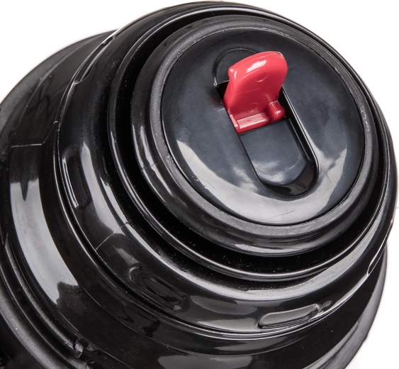 Termoflaskens låg fungerer som et praktisk bæger. Den skruelige plastlukning gør det let og kontrolleret at hælde uden spild.