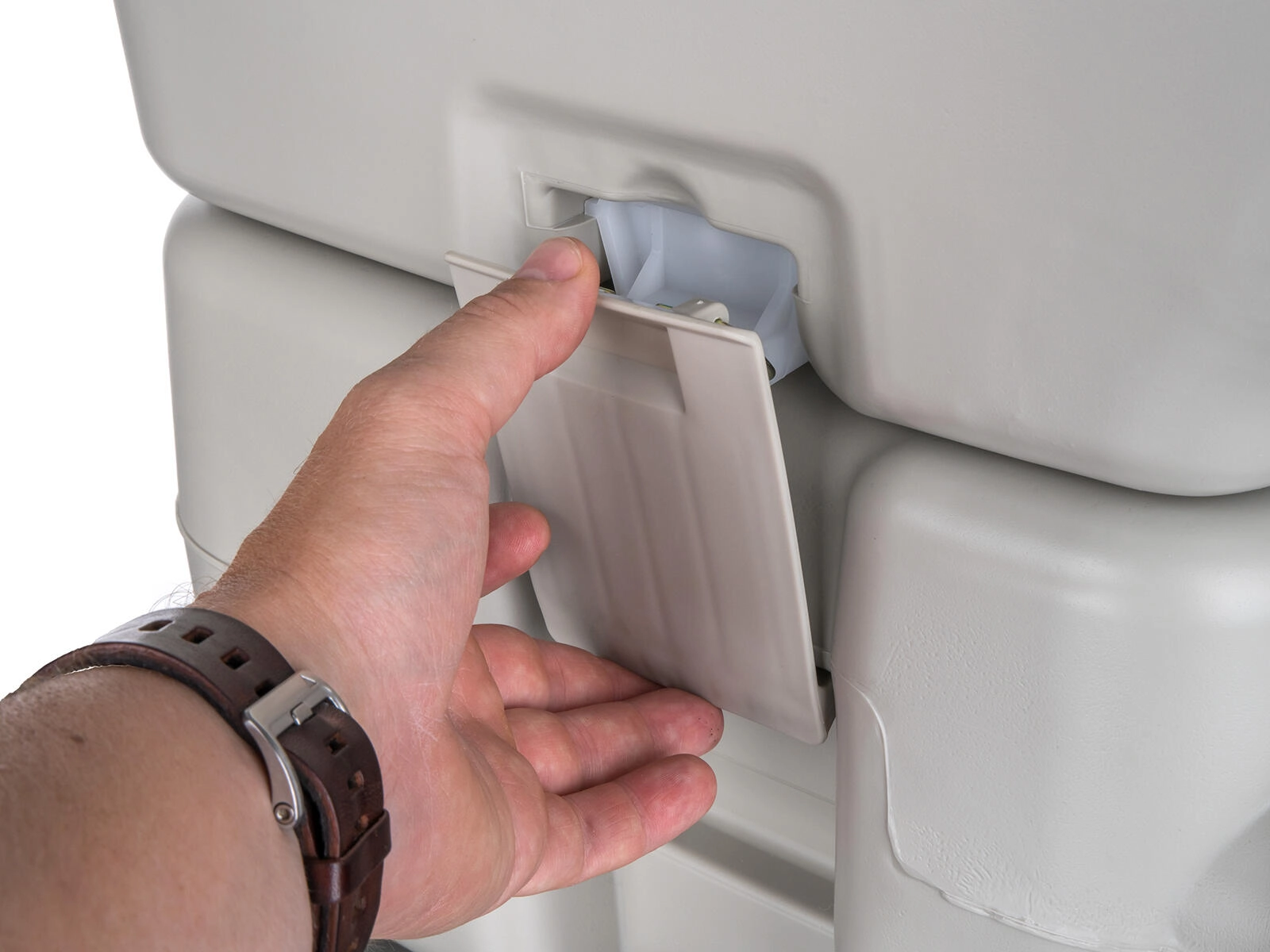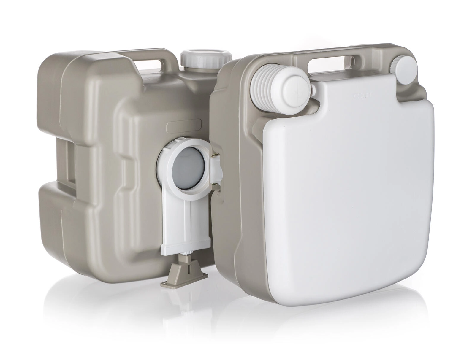 Affaldstanken på 20 l og den separate 14 l ferskvandstank giver tilstrækkelig kapacitet til flere dages brug. Det robuste HDPE‑materiale er designet til lang levetid under krævende forhold, mens den nye forstærkede bundkonstruktion reducerer risikoen for skader ved hyppig transport. En påfyldningstragt medfølger for nem opfyldning af kemiske midler.