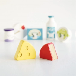 Denne trækasse med mejeriprodukter fra mærket Le Toy Van er ideel til børn, der elsker at lege butik eller køkken. Sættet indeholder en mælkeflaske, smør, yoghurt, fløde og tre typer oste, hver del designet til at se realistisk ud. Disse legetøj er ikke kun sjove, men også uddannelsesmæssige, da de hjælper børn med at forstå vigtigheden af en balanceret kost.