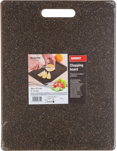 Det praktiske Granite-skærebræt i mørk brun forener et moderne udseende med høj holdbarhed. Det absorberer ikke lugte, er let at vedligeholde og kan nemt bæres eller hænges op takket være det integrerede hul.