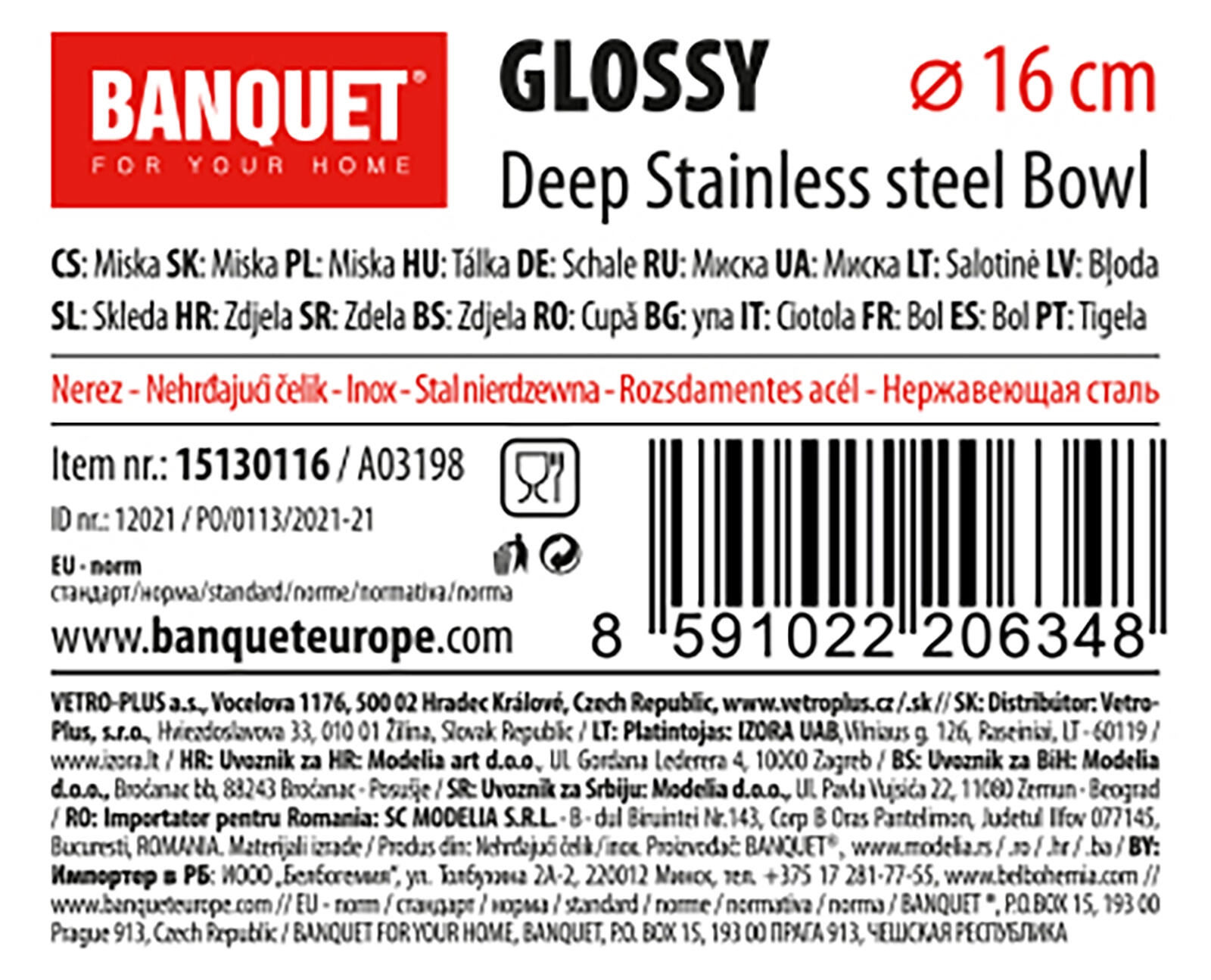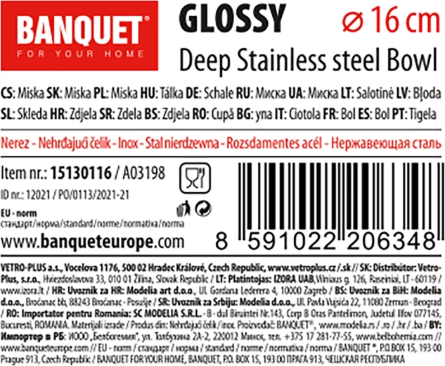 Den rustfri stålkål Glossy med en diameter på 16 cm er ideel til forberedelse og servering. Takket være den dybe form er den velegnet til at blande salater, piske, servere tilbehør og opbevare ingredienser. Kvalitets rustfrit stål sikrer lang levetid og nem vedligeholdelse.