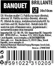Den dobbelt-sidede kødhammer BANQUET Brillante kombinerer solidt bøgetræ med holdbare metal-arbejdsflader. Den ene side med grovere relief er ideel til at mørne sejere fibre, den anden med finere mønster eller plan flade til jævn bankning og udligning af skiver. Med sin længde på 30 cm ligger den godt i hånden og giver fremragende kontrol ved tilberedning af steaks, schnitzler og minutkød.