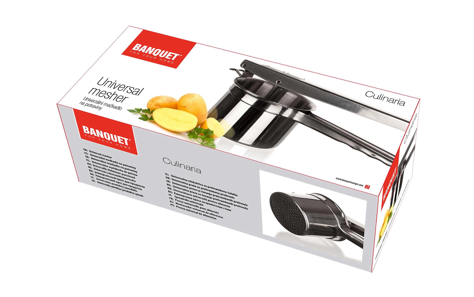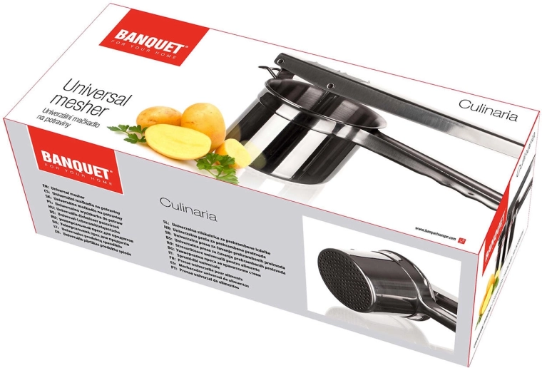 Den alsidige madpresser fra Culinaria-serien er en pålidelig hjælper i ethvert køkken. Løftestangsmekanismen giver fremragende kraftoverførsel til jævn presning af kogte kartofler og grøntsager gennem den fint perforerede kurv, så du opnår en luftig, ensartet konsistens uden klumper.
