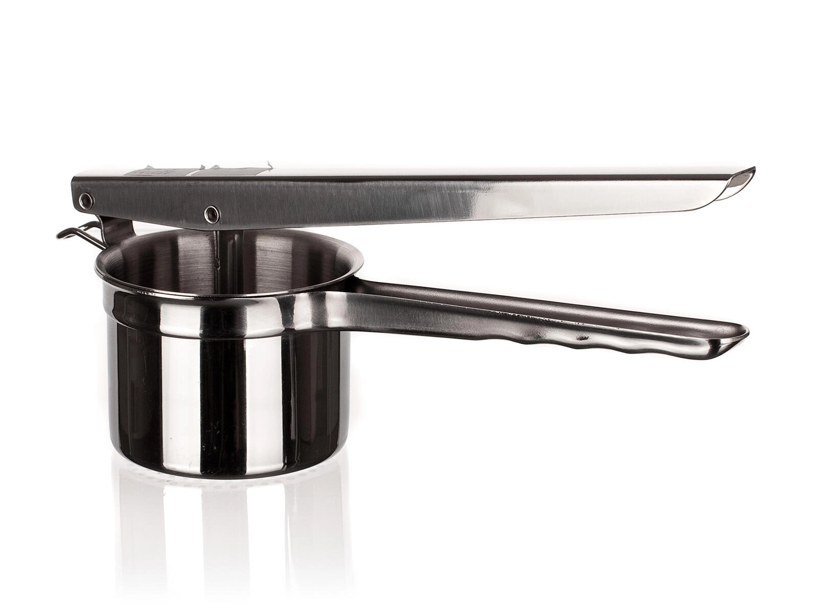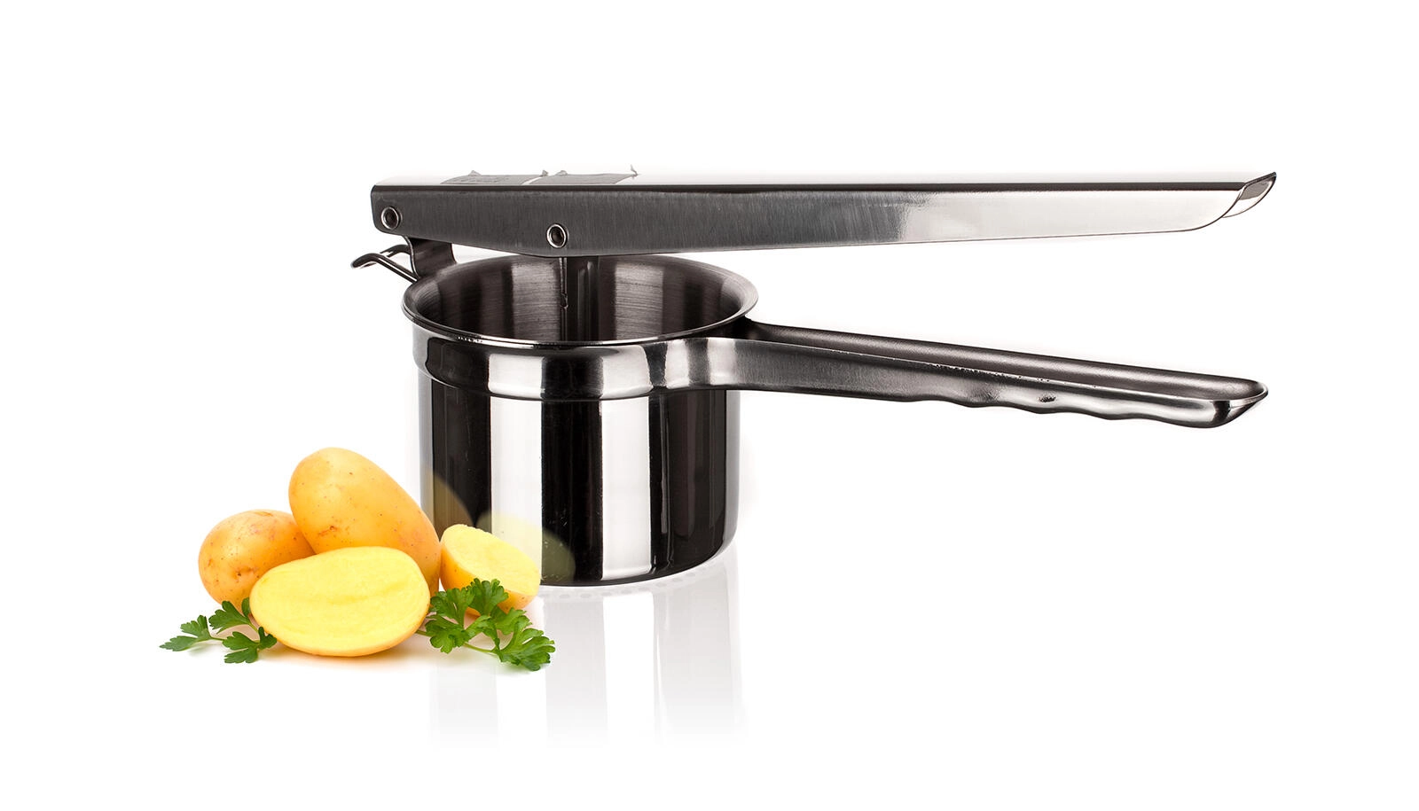 Lange håndtag og udveksling via løftestang sikrer minimal anstrengelse og maksimal kontrol ved tilberedning af mos og puré uden klumper.