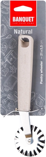 Den lige rullekniv NATURAL er en pålidelig hjælper til præcis udskæring af deje og kagelag. Takket være det robuste rustfri hjul skaber den et rent og lige snit, mens det ergonomiske håndtag af polypropylen og hvedeklid ligger behageligt i hånden og sikrer komfort under arbejdet.
