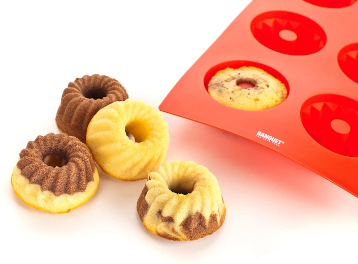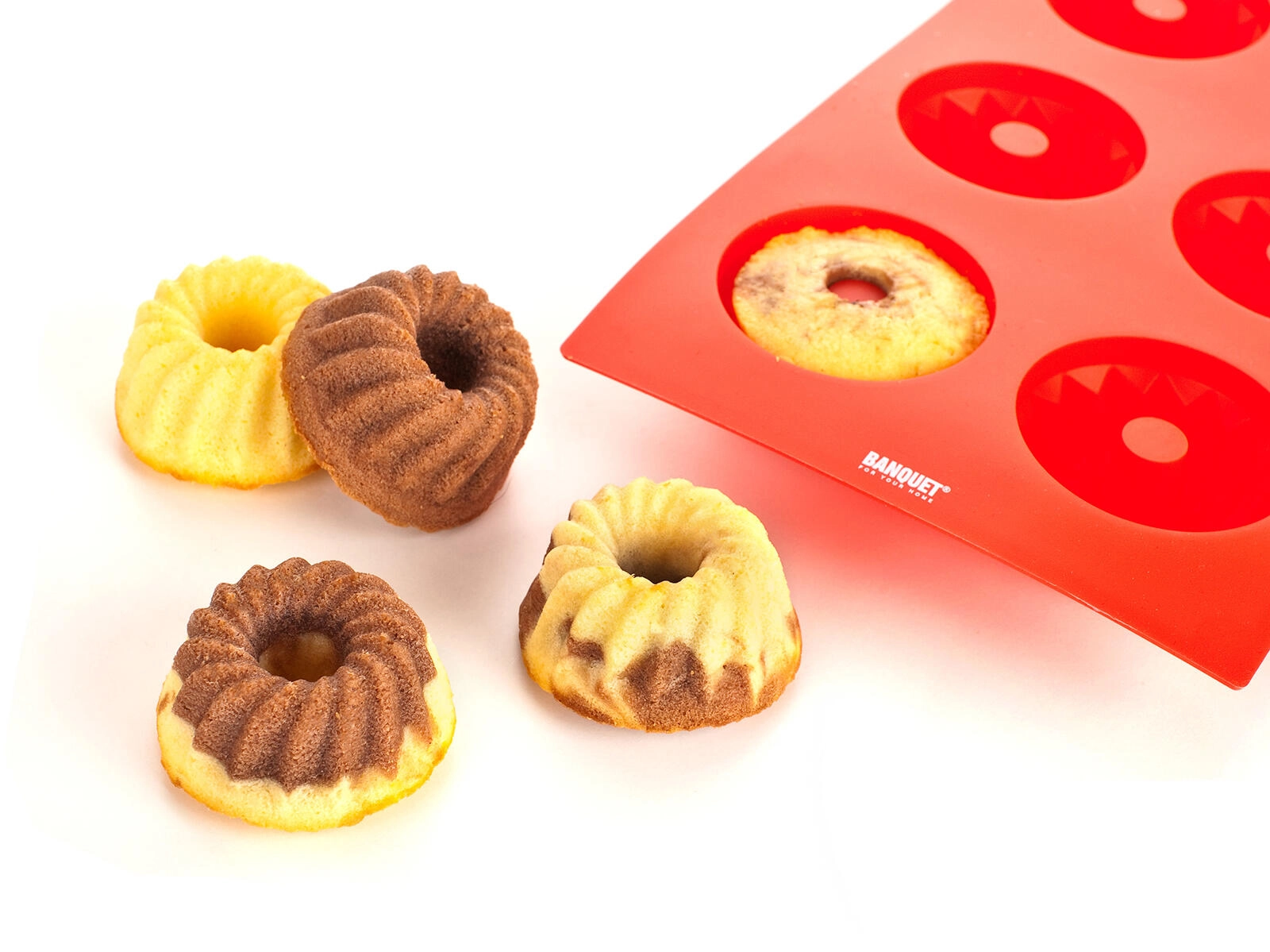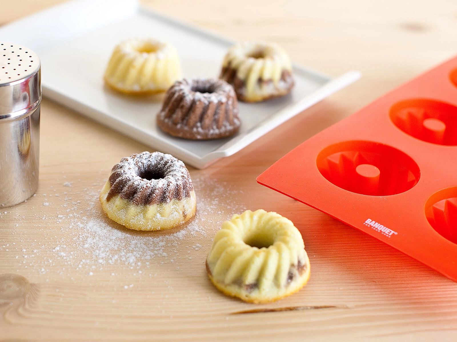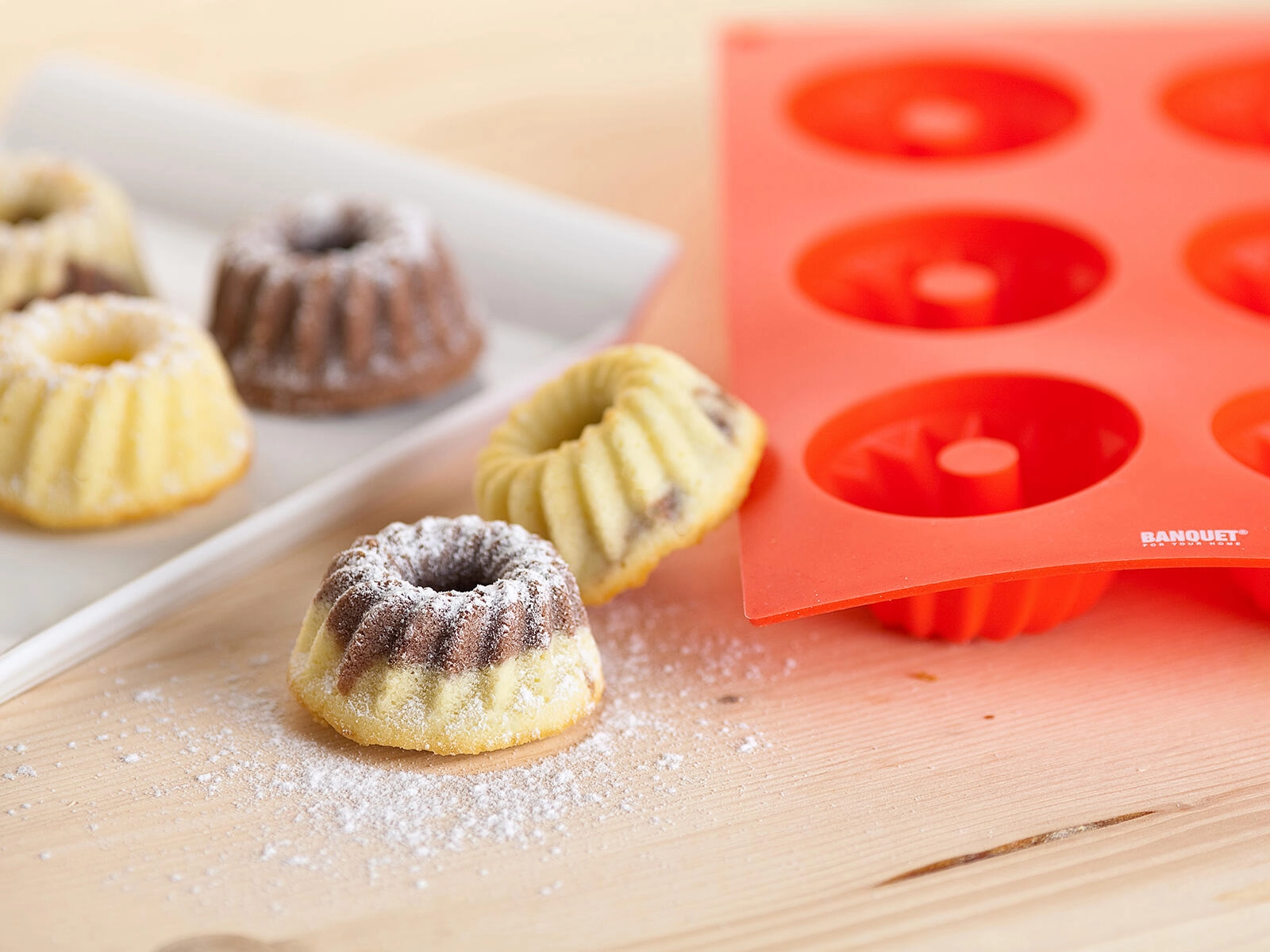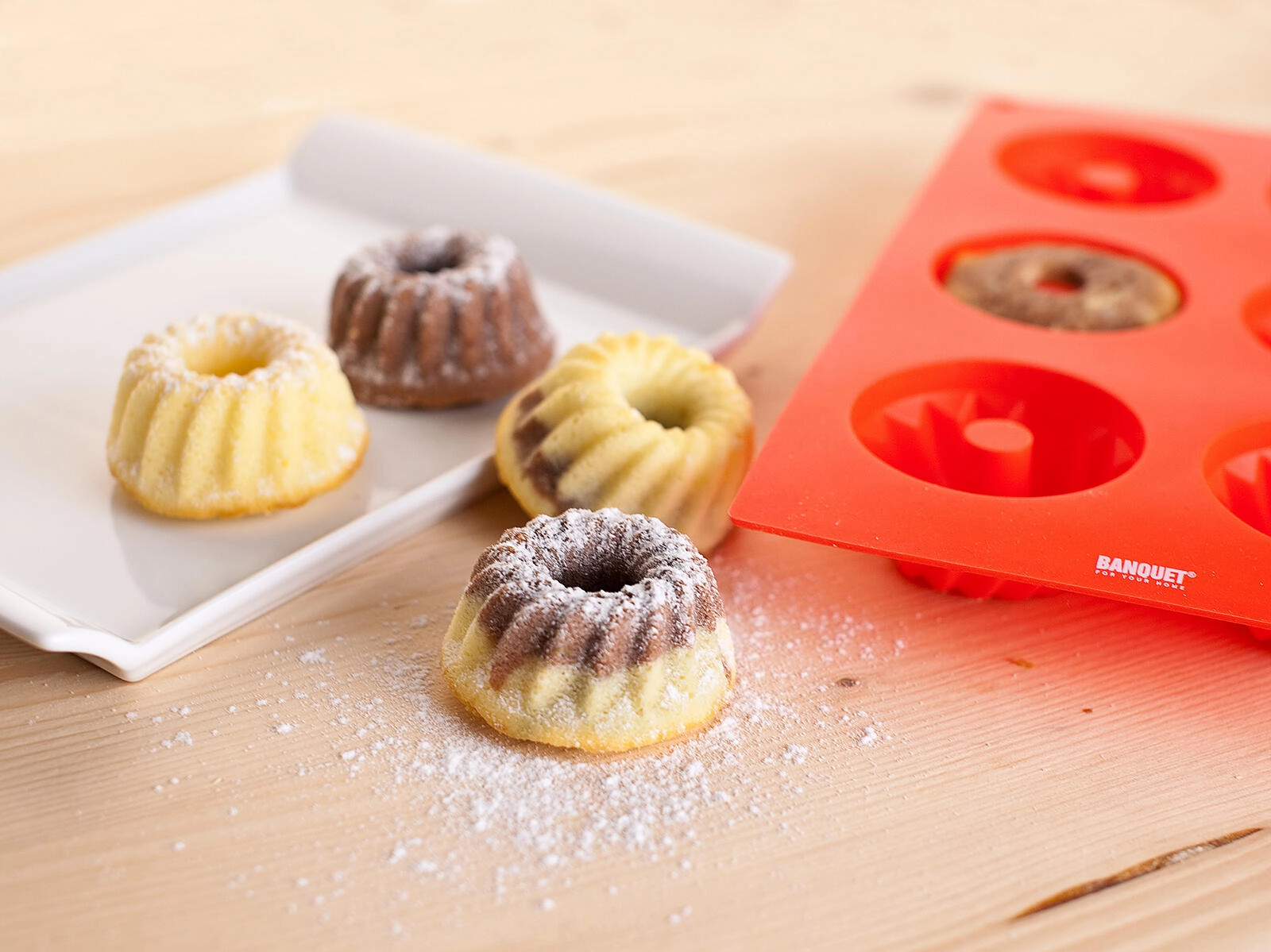 Fleksibel silikone sikrer, at dejen ikke sætter sig fast, og at mini-kuglofferne let kan tages ud af formen uden at miste faconen.