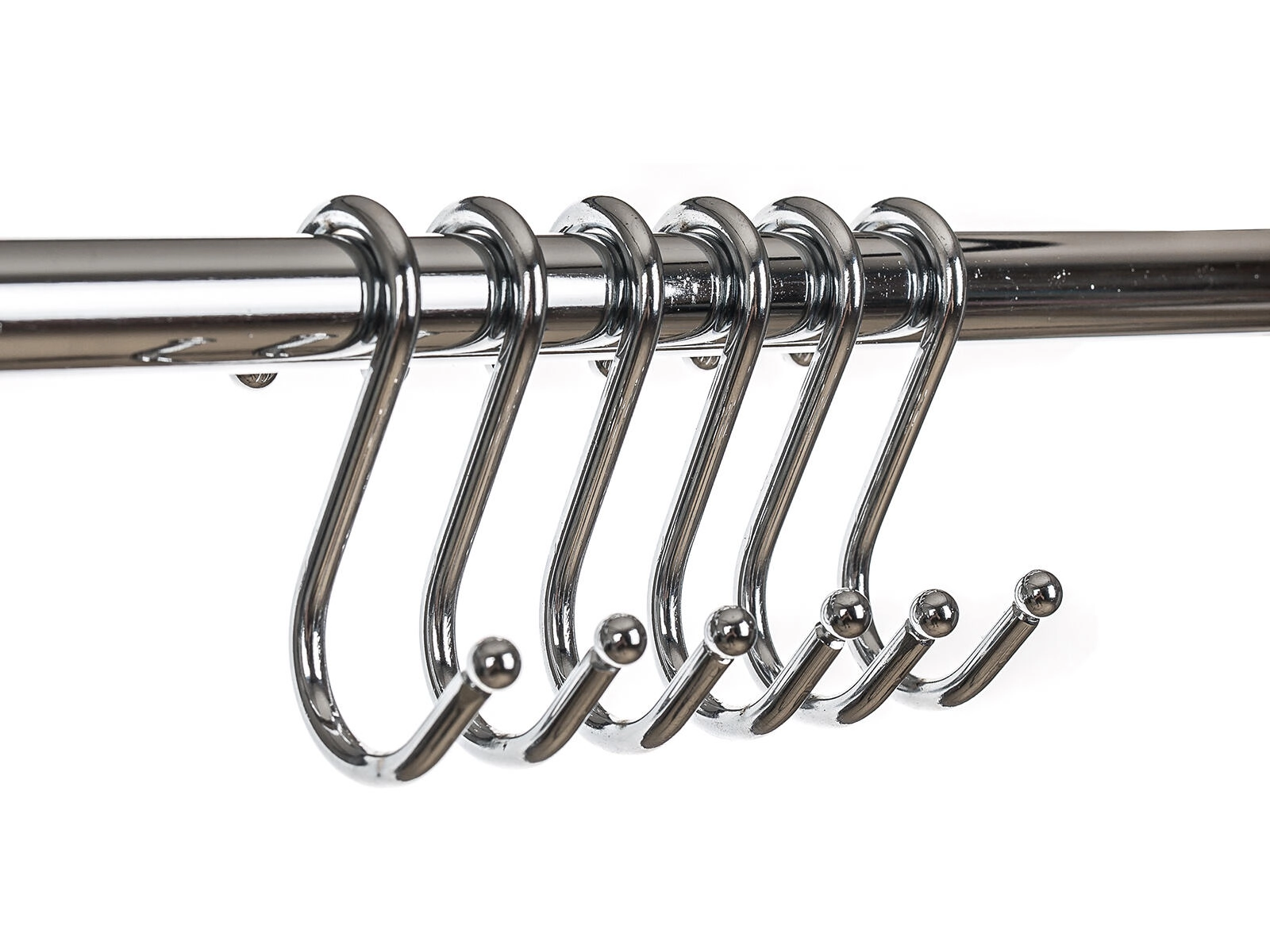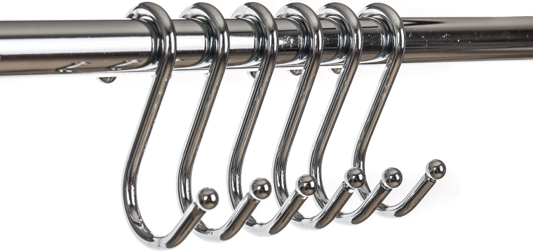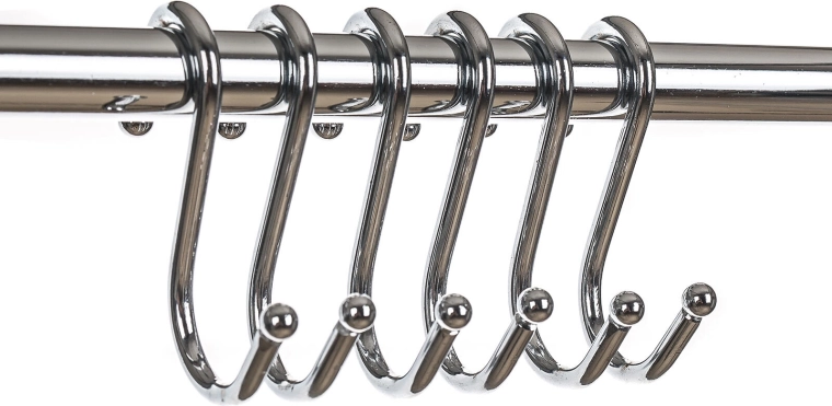 S‑krogene glider let langs stangen og gør det muligt at tilpasse afstandene præcist efter mængde og størrelse på de ophængte genstande – fra redskaber til poser.